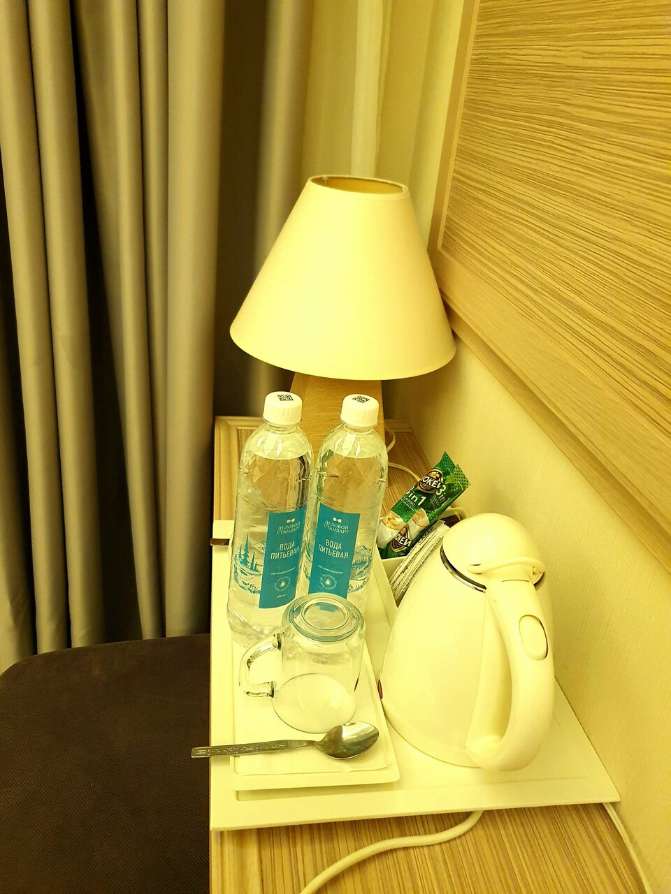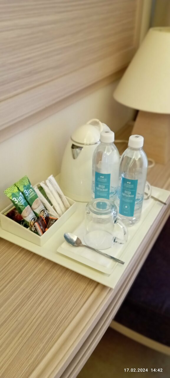 - Хорошее оснащение номера (чай, кофе, вода).