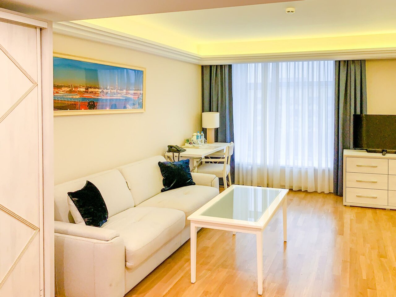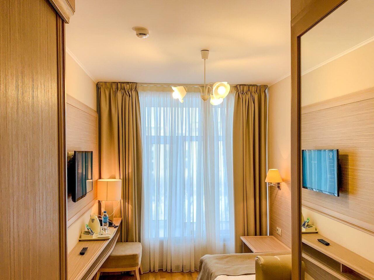Хорошее место расположения, из окна номера виден Смольный собор. Из пожеланий. Останавливался в номере категории стандарт. Всё прекрасно кроме того, что в душевой на раковине нет стаканчиков, куда можно поставить зубную щётку. Проблему решили быстро: попросил на ресепшене обычный стакан. Но всё же луше было бы, чтобы подставки под туалетные принадлежности уже были в номере.