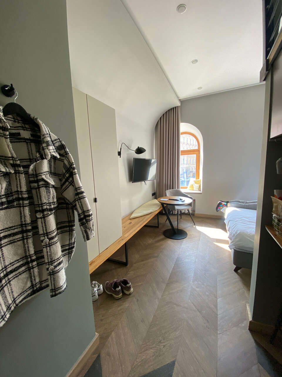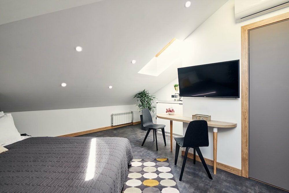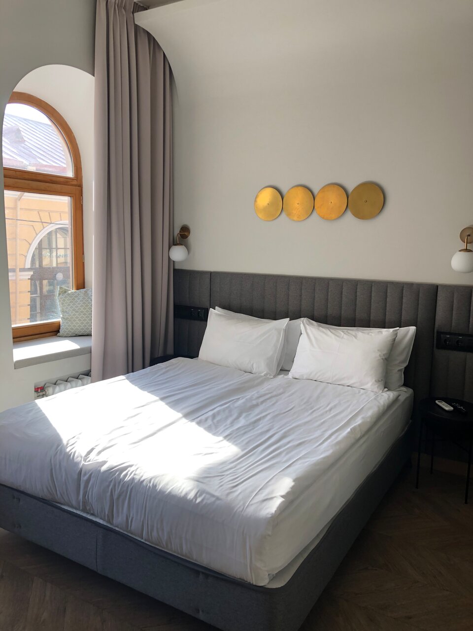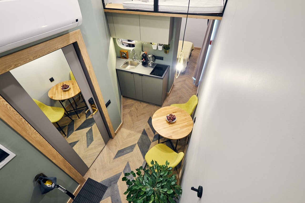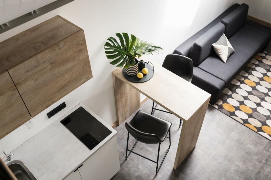 Классный отель, очень удобная локация. В номере есть все необходимое. В том числе небольшая Кухня — стоит фильтр — очень удобно. Кровать большая, удобная, подушки удобные. Интерьер очень стильный. Рекомендую.