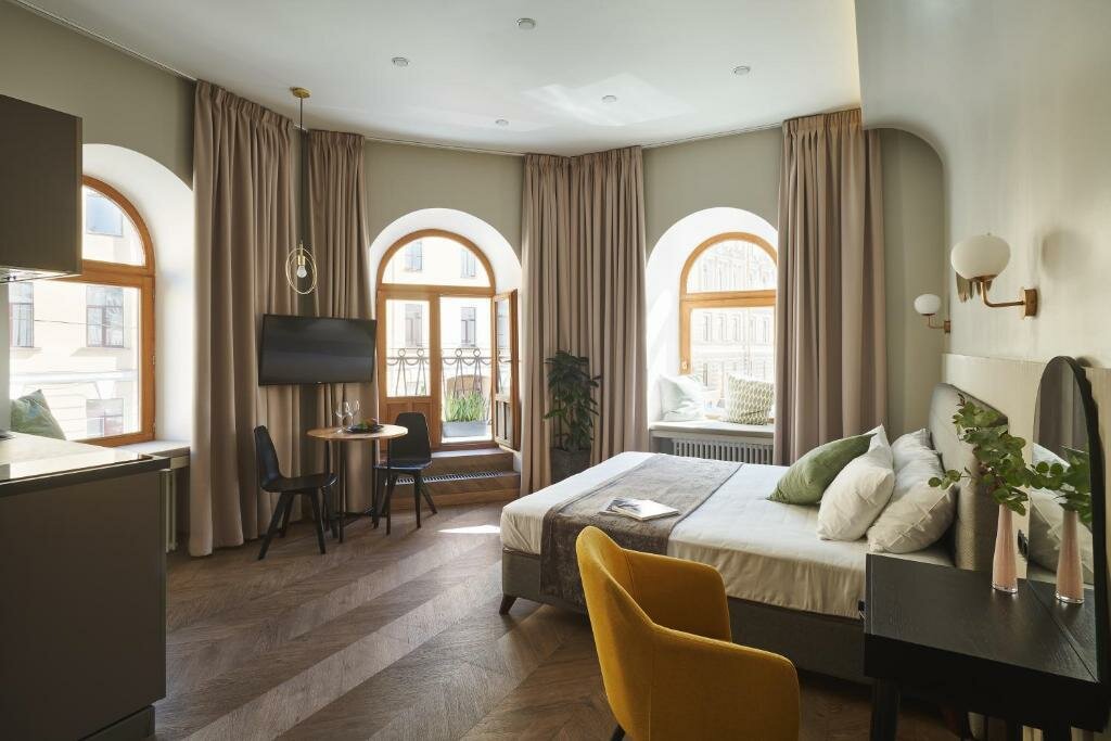Отличные городские отели! Сервис, дизайн, чистота и расположение — всё на отличном уровне. О госте заботятся: в номере есть масса всяких классных нужных мелочей, вид из окон любого отеля (пока была на Петроградской и на Мойке) очень вдохновляет буйством зелени, на ресепшен всегда предлагают оставить багаж после выезда. Приятно быть вашим гостем.