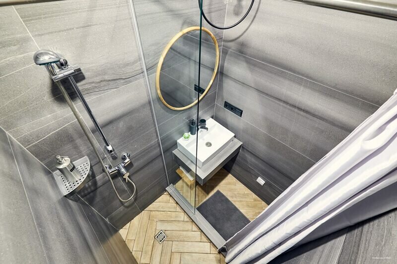 - Туалет и душ через коридор.