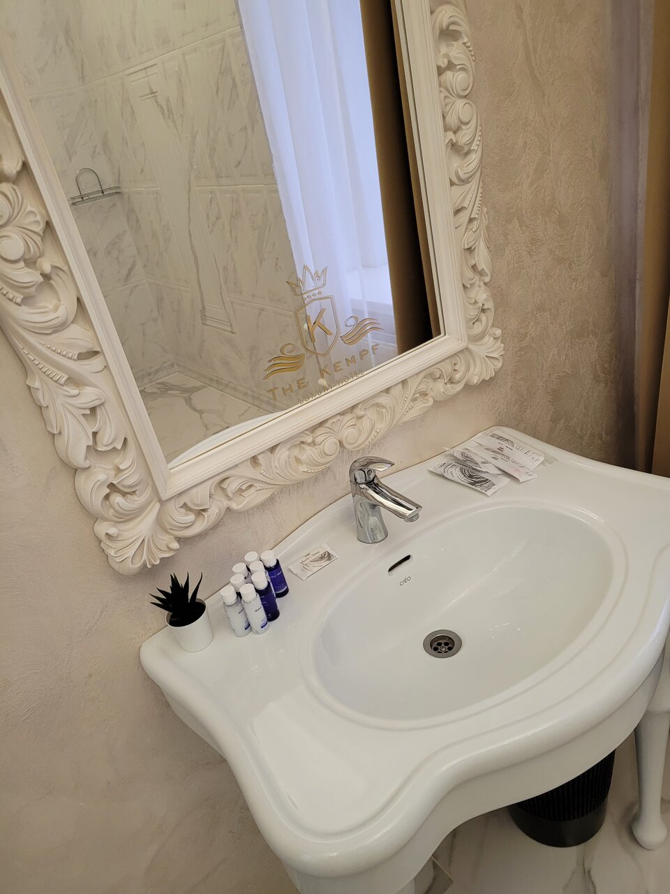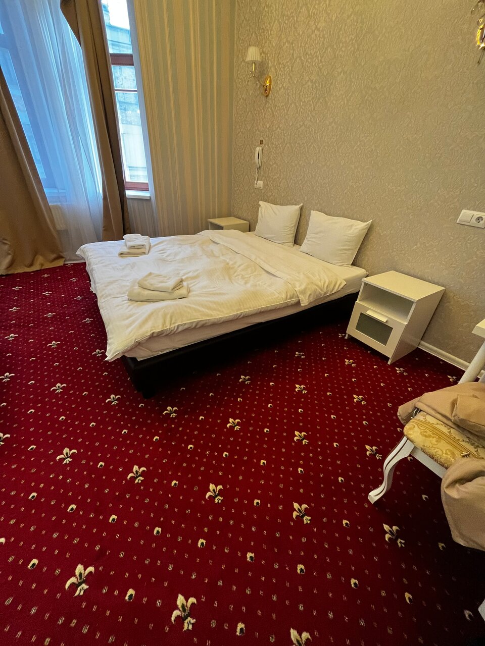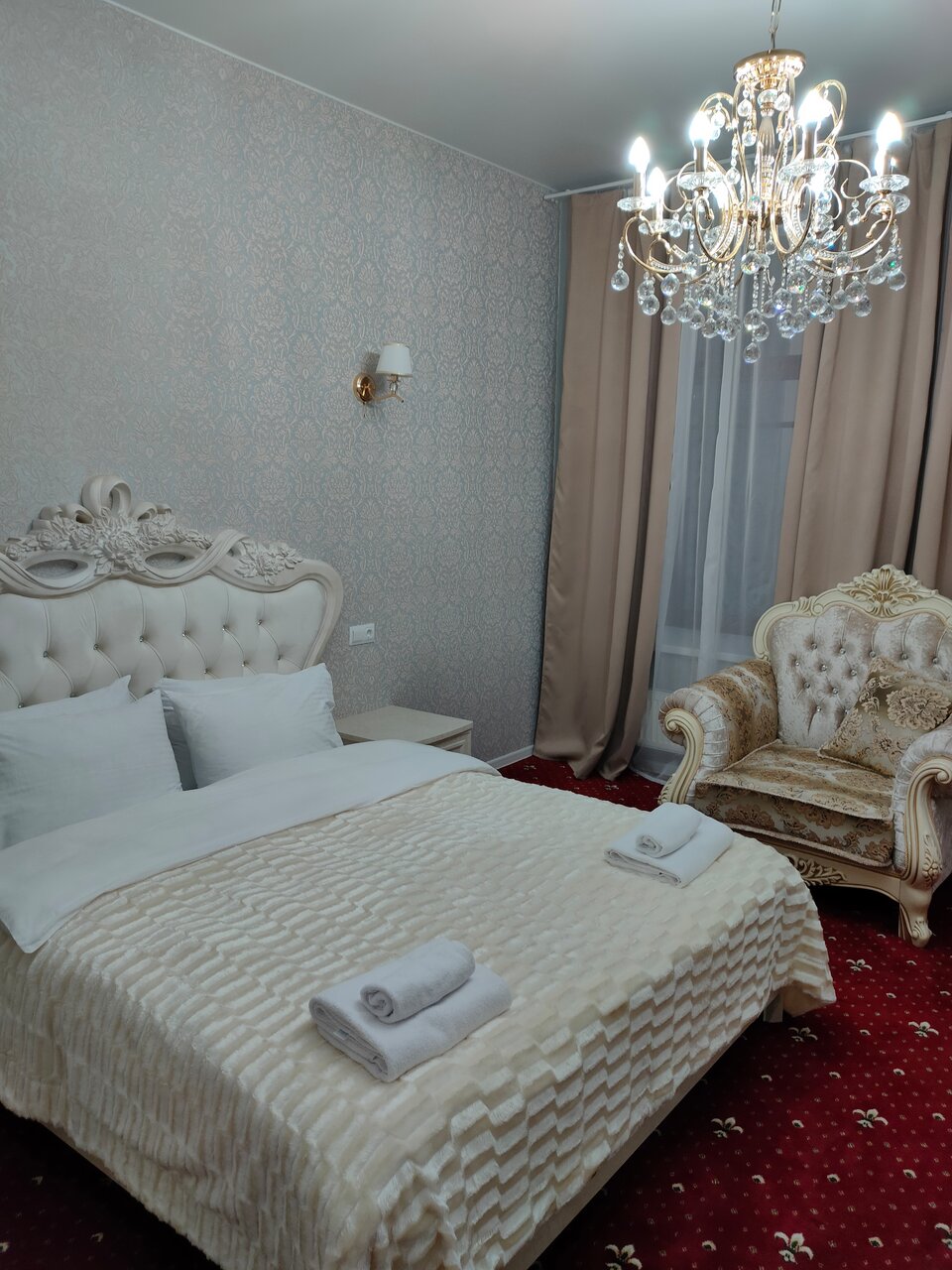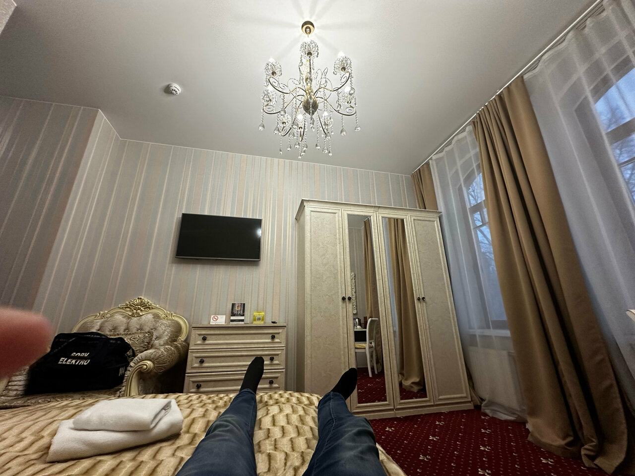 Отель неплохой, в центре города, парковка для машины, удобная. Сам отель сделан стильно, вензеля, люстры, мебель, всё на уровне, но есть одно ‘но’, стены, слышимость отличная, как соседи в соседнем номере говорят, как будто рядом сидят за столом.