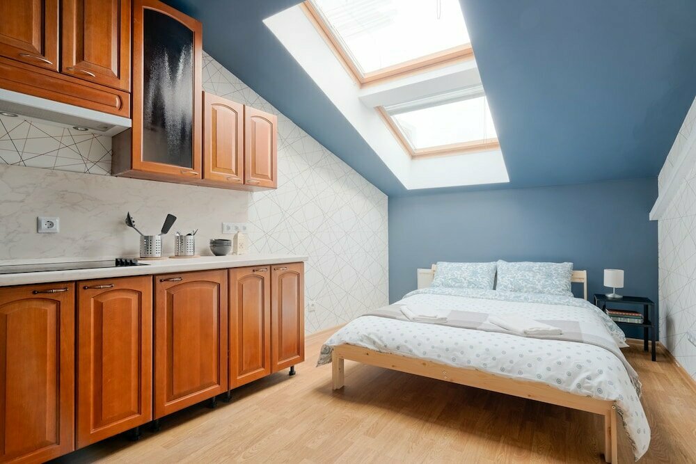 Классный мини отель, принимают быстро и удобно через месенджеры. Комнаты комфортые есть с красивым видом через окно в крыше. В кухне тоже красиво окна в крыше вписываются в интерьер.