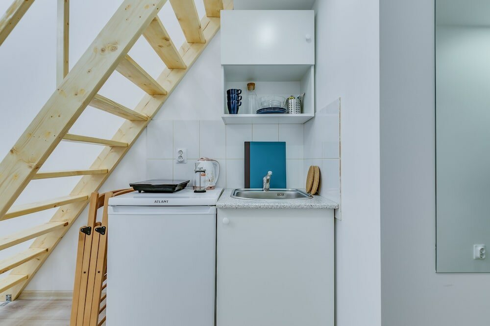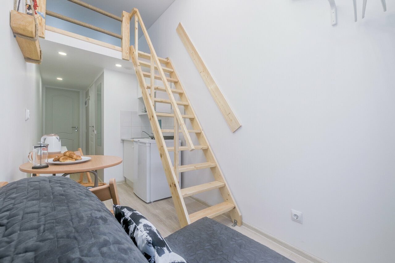 Очень маленькие студии, местами очень пыльные, плесень в ванной, постельное белье грязное и несвежее. Шторка в ванной видимо с соседней помойки, ибо трогать ее решится не каждый. Вентиляции на антресоли вообще нет, спать душно. Стены из картона, слышно соседей Матрас на антресоли — даже стыдно называть матрасом, если на него сесть, то чувствуешь сразу пол. Неплохо расположено, удалённое заселение.