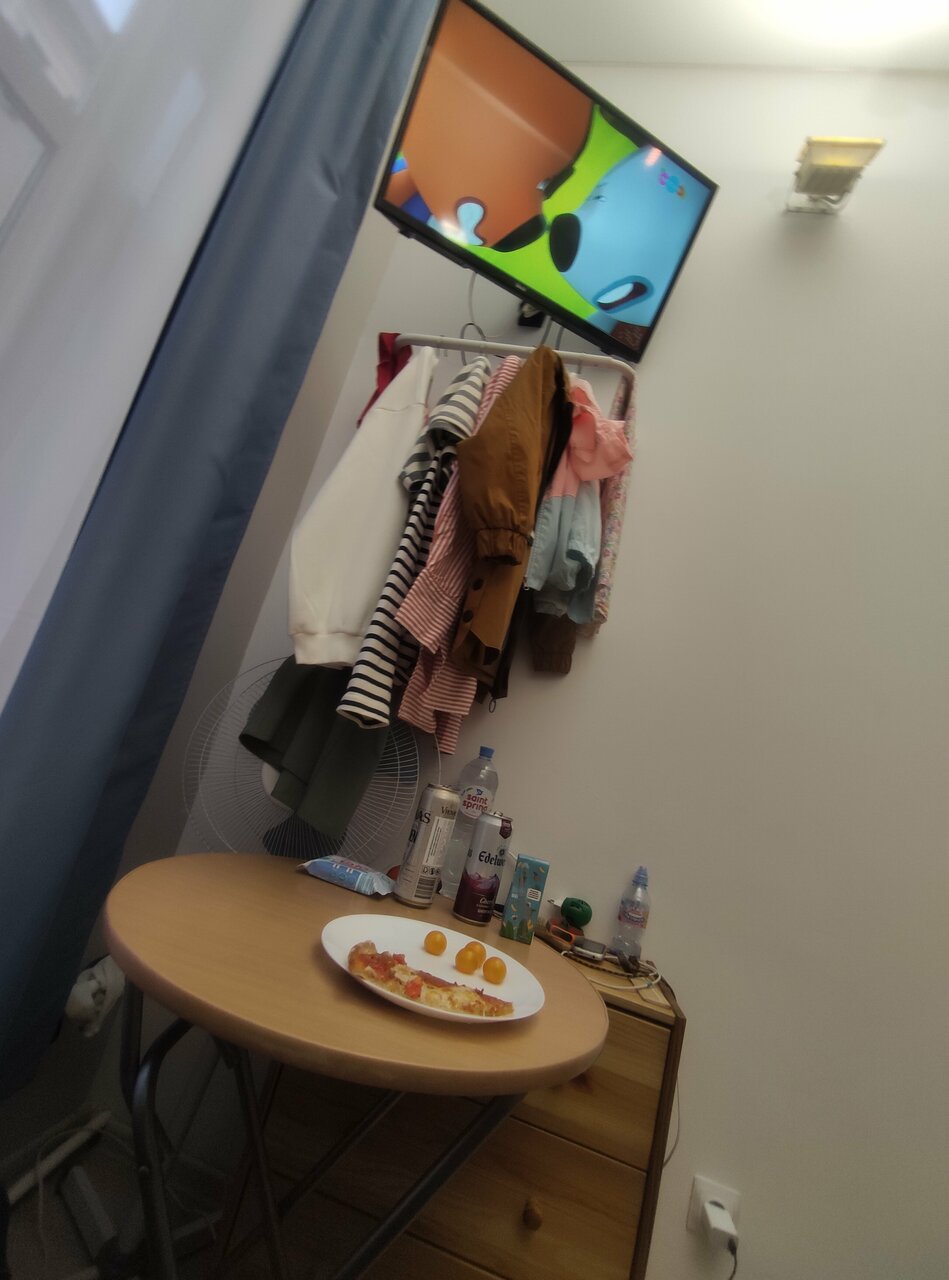 Очень маленькая комната ,для лилипута )стены гипсокартон ,слышимость очень большая .