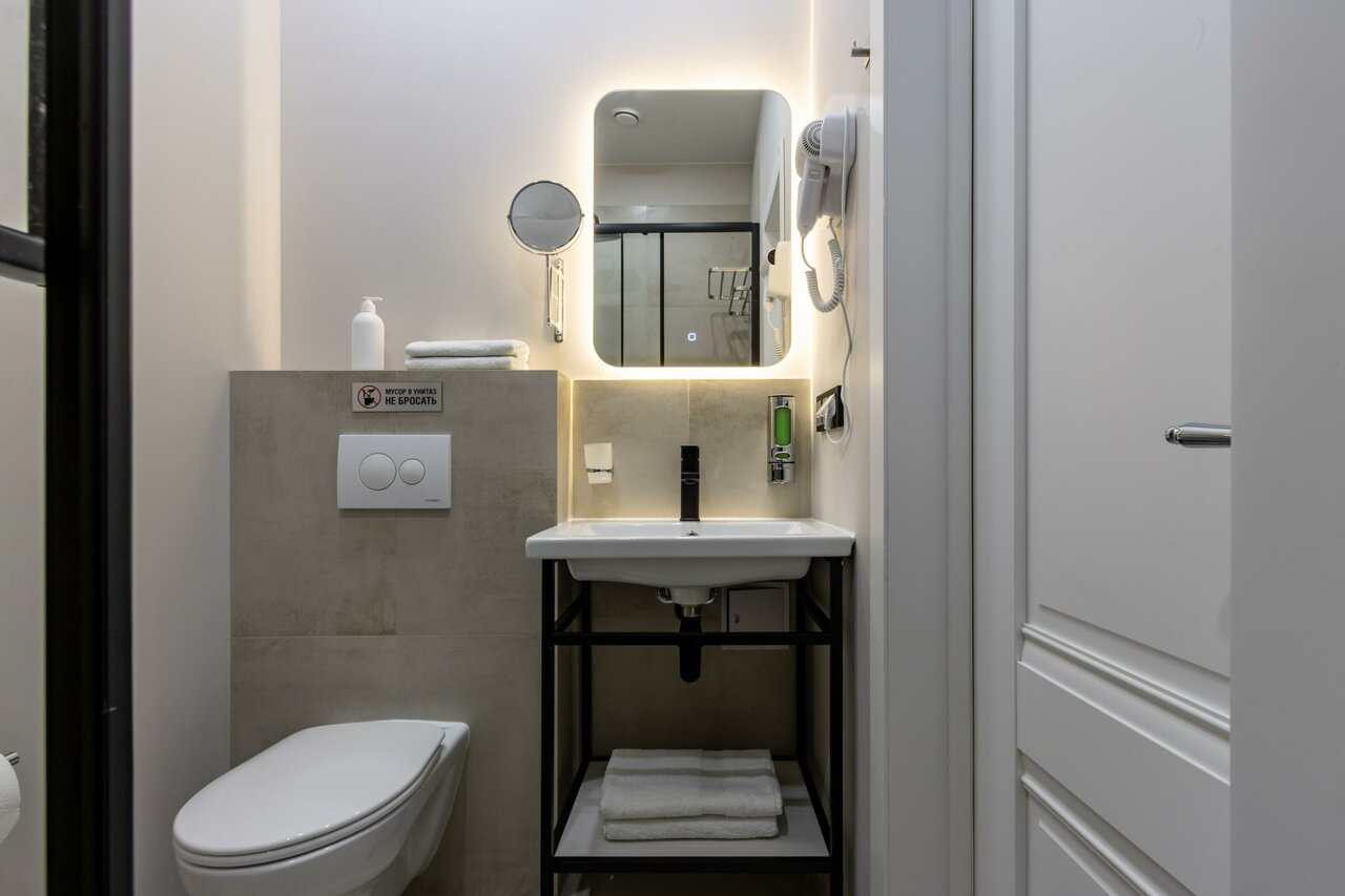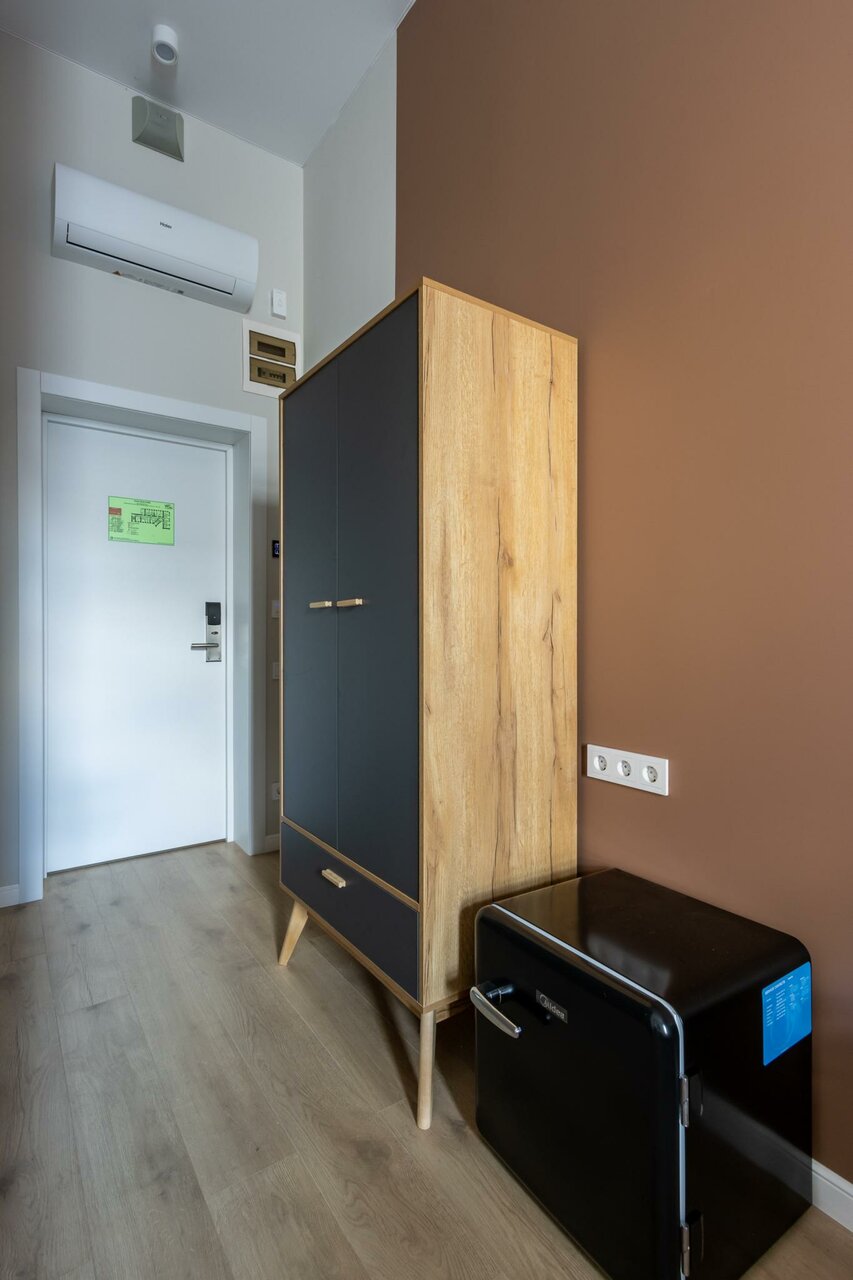 Очень хороший отель. А учитывая его стоимость -вообще отличный. плюсы: Расположение (5 минут от метро Горьковская, рядом очень много разнообразных кафе и ресторанов, достопримечательности, вся Петроградская сторона — под боком) Приятный современный дизайн номеров, все новое, соответствует фотографиям на сайте отеля; Чистота в номере; Много всего есть в номере: чайник, холодильник, микроволновка, чайные пакетики с чашками, сахар, тапочки, большой набор полотенец, беруши, мыльно-рыльные принадлежности, одноразовый набор ‘зубная щетка + паста’, фен; Ооочень удобная кровать, плотненькая. Приятное одеяло — теплое, но легкое. Шторы — блэкаут, приятная расцветка, радует глаз. Минусы: слышимость, если ходят соседи — все, что происходит в коридоре — очень слышно. В номере также — в туалете как-будто ‘нет двери’ — все слышно. Нет вешалок в шкафу. Спасибо отелю, хороший вариант для размещения в Спб!