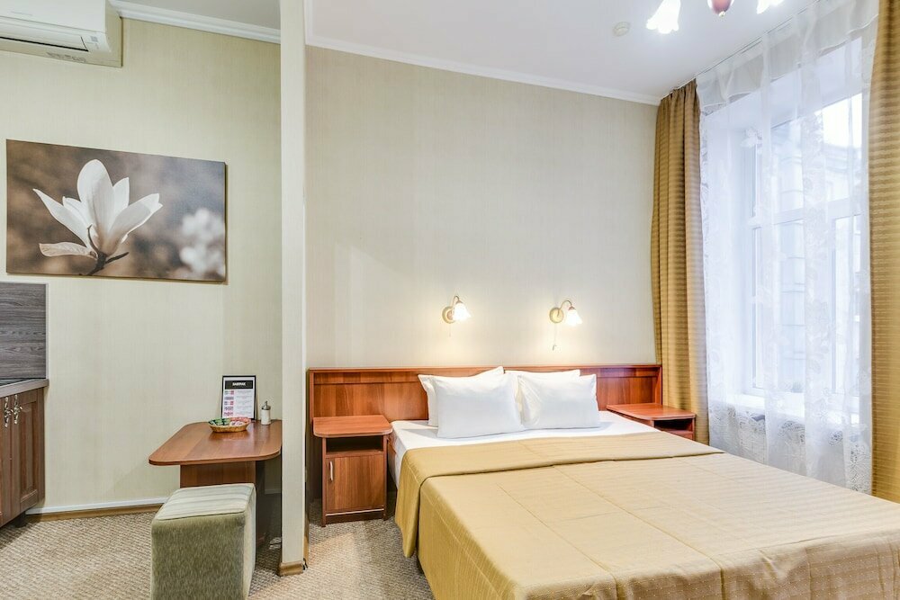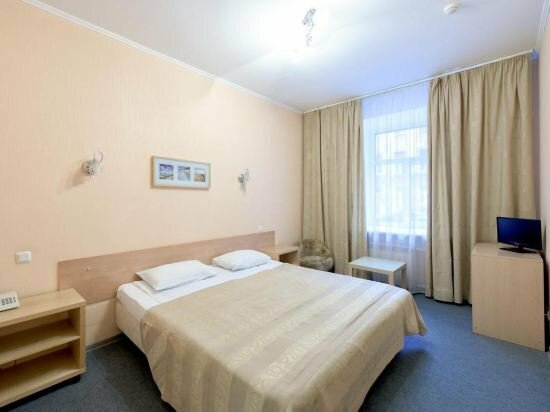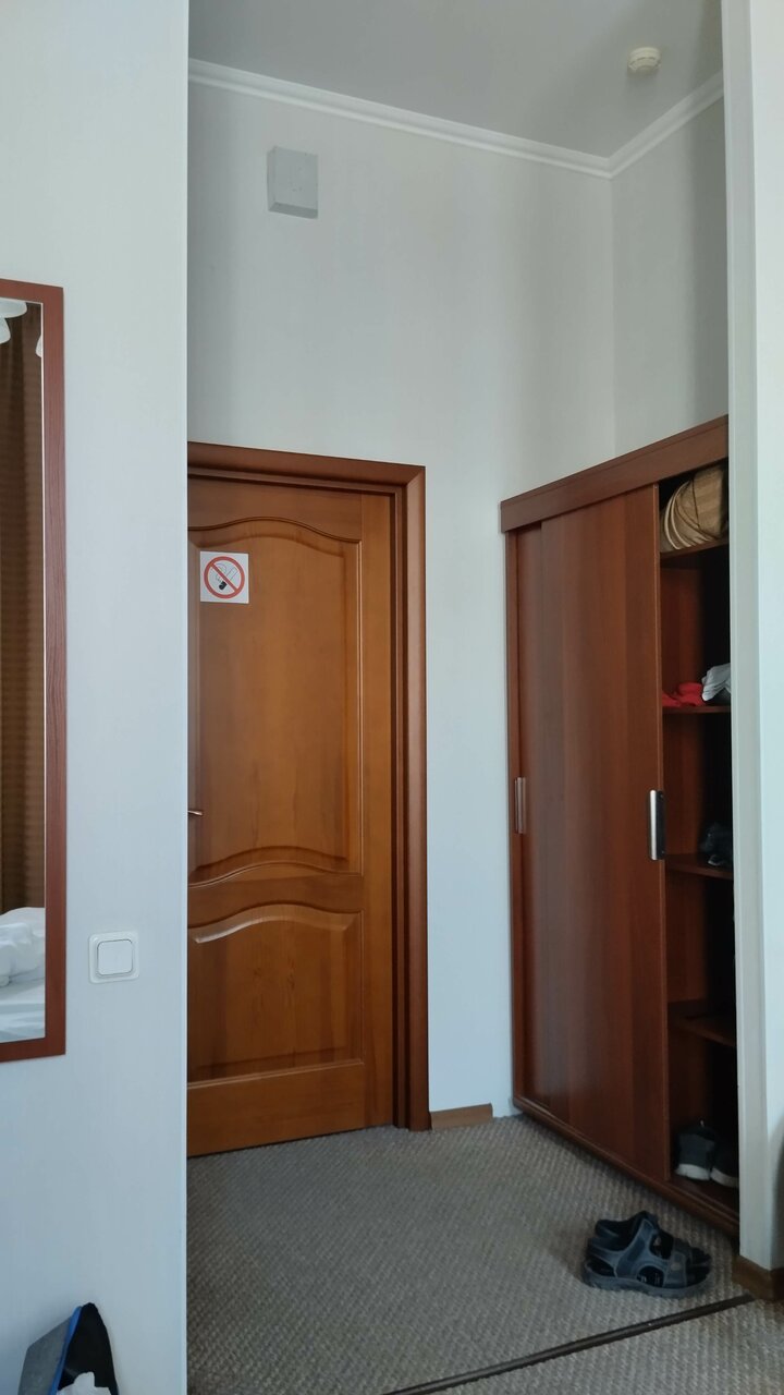 Выбор был из-за выгодного расположения и не высокой стоимости для семьи 4 чел. Много времени в отеле не находились, основная цель — знакомство с городом. Описание и фото на сайте Яндекса соответствовали увиденному при заселении, кроме отсутствующего кондиционера. Чисто, светло. Понравилась дистанционная система заселения. В пути, выполнили условия по инструкции которую прислали в whatsapp, в ответ прислали явки, пароли)) и видео. Прибыли после девяти вечера, за 10 мин заселились в номер без как либо контактов с администратором отеля. Решили сразу прогуляться и по ужинать, каково было удивление что в центре города в 6 мин от отеля на Невском просп. есть бюджетная круглосуточная столовая и бар. Парковки на территории отеля нет, только вдоль улицы ,днем почасовая оплата, ночью бесплатно. Мусор в номере убирают не каждый день, ночью через дверь видно свет в коридоре и слышны шаги. В целом выбором отеля довольны, хороший вариант для короткого отдыха семьёй.