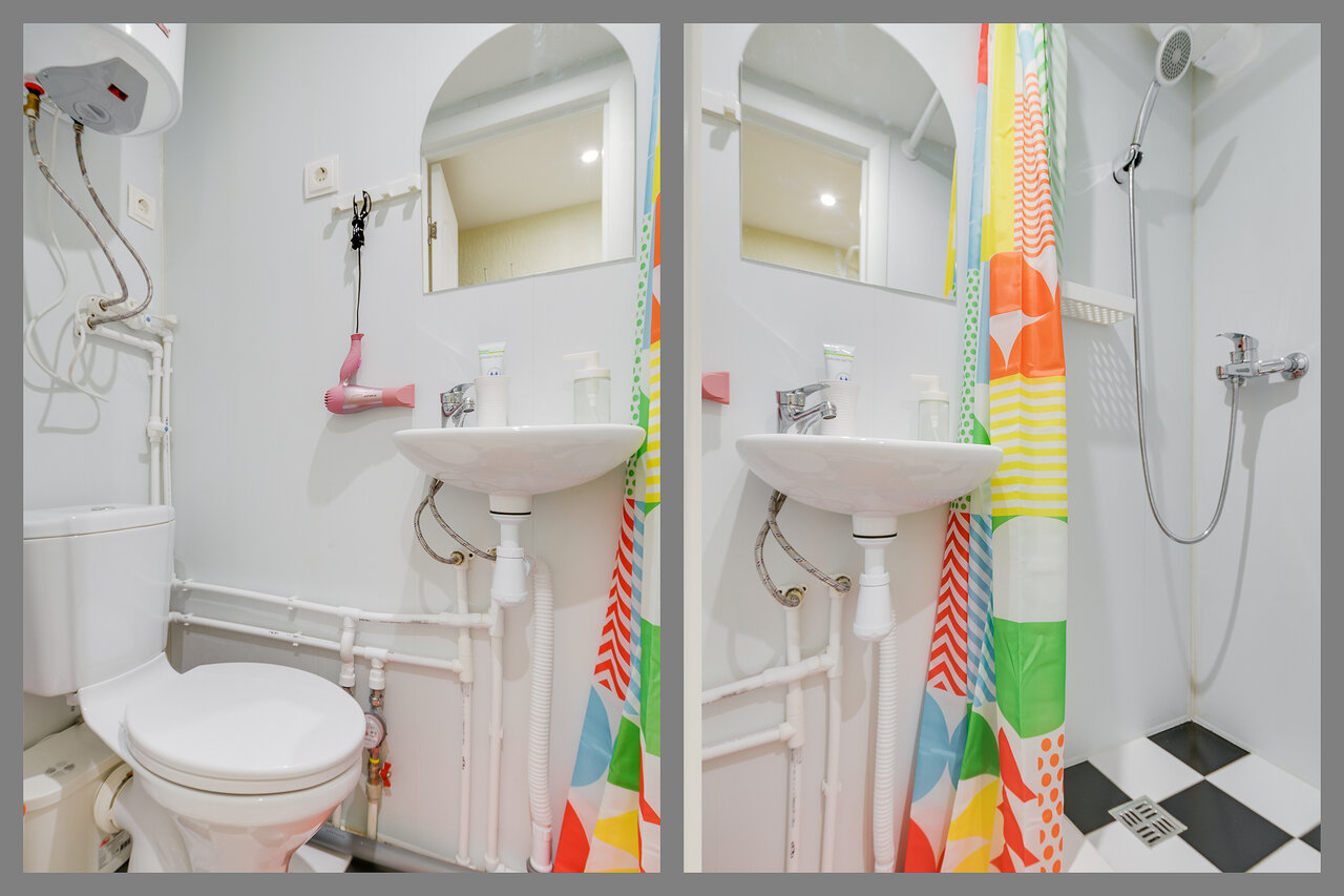 Забронировали номер на четверых,по факту можно было разместиться только троим. Номера очень маленькие. Часть маленькая комнаты отделена для душевой и туалета, расстояние об туалета до малюсенькой раковины см 20-30. При смывк туалет очень сильно что-то гудит,наверное насос. Для двоих вполне возможно забронировать такой номер,но не для троих или четверых. В целом номер чистый.