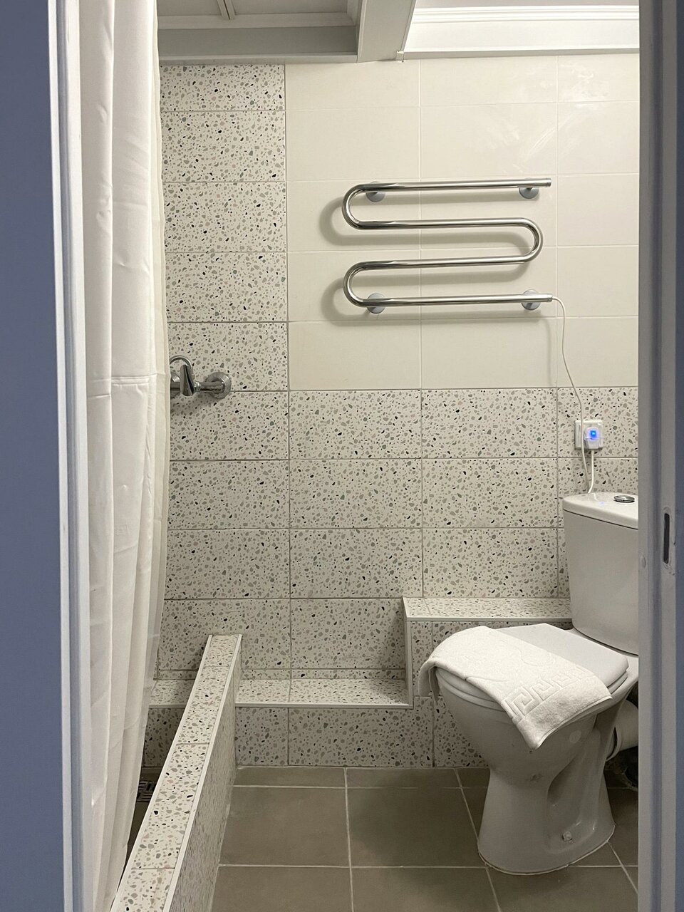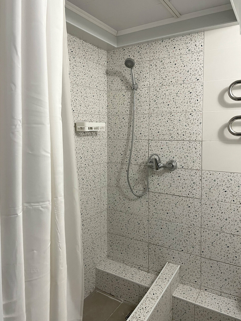 Грязно. Вода в душе не настраивается, так как все номера связаны между собой. Если кто-то в отеле открыл горячую воду, то из душа тут же льётся ледяная. Ремонт и мебель давно не новые. Стены — гипрок, слышимость соседей — 100%