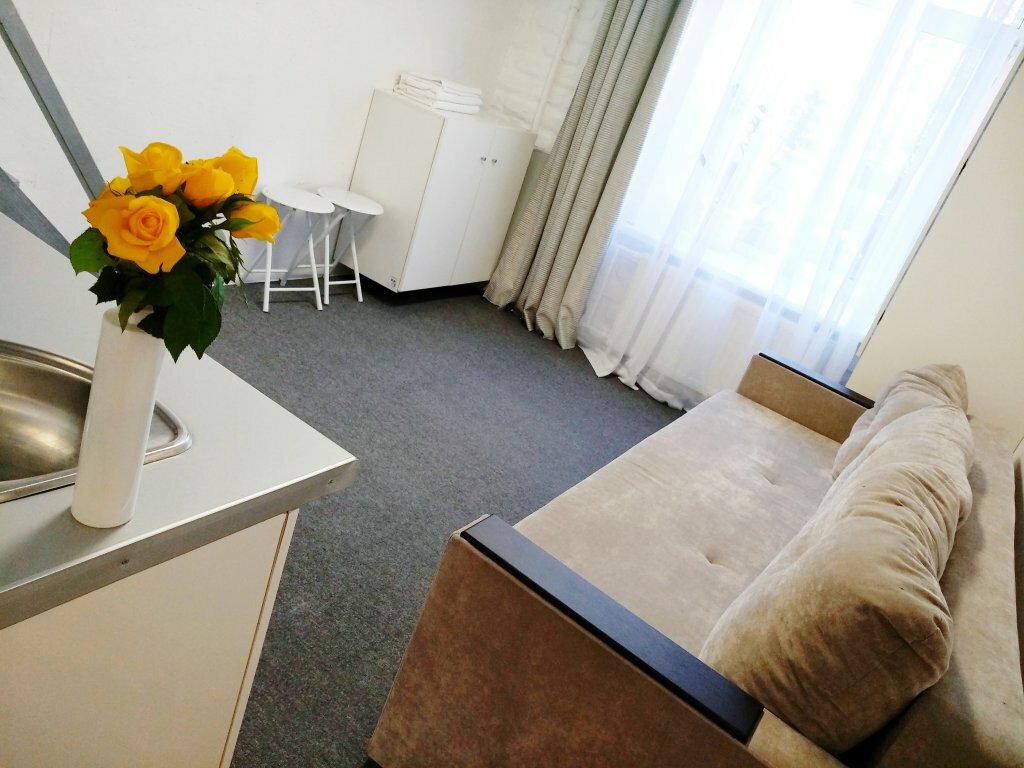 Останавливались тут летом, очень понравилось расположение, ходили пешком до всех достопримечательностей. Нас встретили очень приветливо, подождали в холле, пока готовился наш номер (раньше приехали). По всей гостинице хождение в тапочках, так по-домашнему. Каждый день производилась уборка, пока нас не было в номере. Про сам номер: двухьярусный, очень удобный, со всем необходимым для приготовления пищи. В душе всегда горячая вода, хороший набор. У нас не было телевизора, но был вай фай, который в принципе мы использовали для просмотра фильмов на планшете. Слышимость вполне нормальная, или нам попались отличные, тихие соседи. Вход в гостиницу с помощью домофона, поэтому посторонних людей не было. Очень понравился этот отдых. Остановилась бы я снова тут? Однозначно да!! Советую.