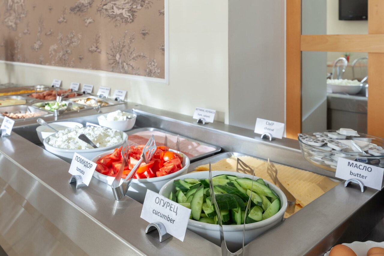 - Вкусные завтраки (шведский стол:омлет, сырники, каши, мясо, кофе и др.).