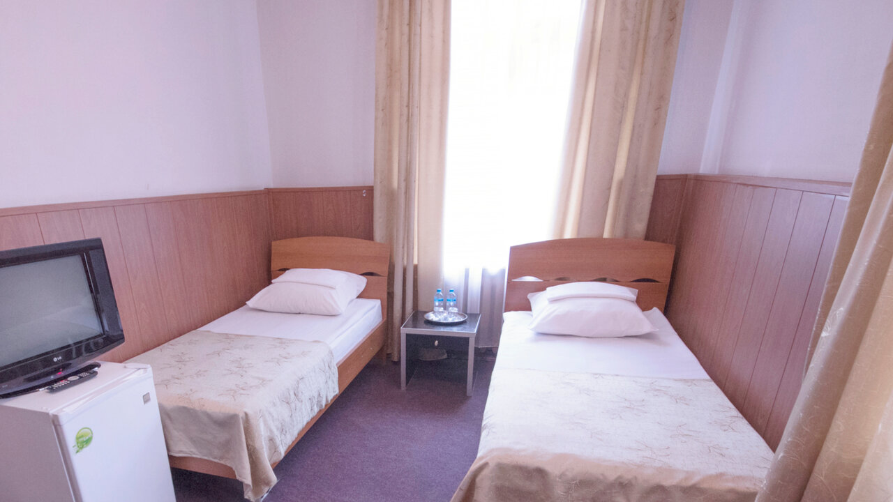 Довольно старая гостиница. Ни одного номера с кондиционером! За три ночи берут 18 тыс. Очень дорого я считаю за такой сервис. В номере ну очень грязный ковролин,тут явно ходили в грязной обуви и его никто после этого не чистил. Завтраки довольно скудные. Плюс,есть крытая территория,где можно оставить машину