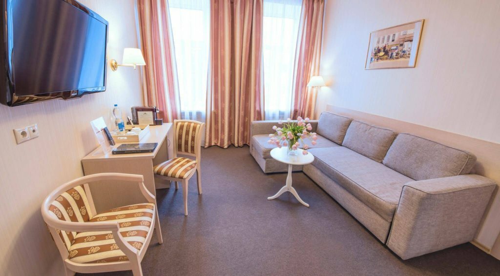 Из плюсов: чистые номера при заселении, удобное расположение .Большая и очень уставшая гостиница, лифта нет, на лестницах протертый до дыр ковролин, запах неприятный, даже в номерах, завтраки не вкусные за отдельную плату, в помещении кафе стояла адская жара, администратор часто отсутствовал на месте. Гостиница нуждается в ремонте, производит не очень хорошее впечатление.