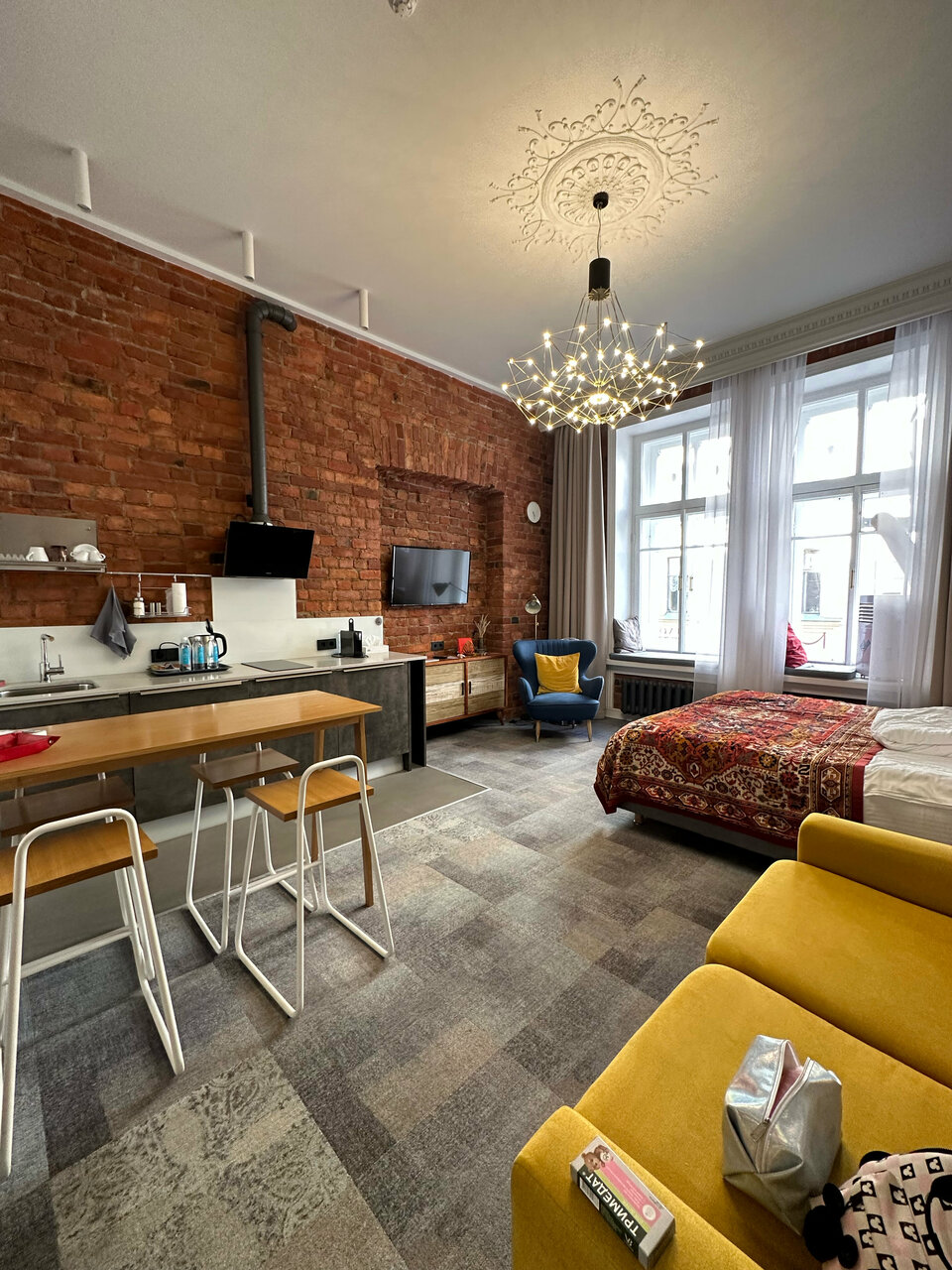 Мы с мужем провели два прекрасных дня в Петербурге, а номер, который ждал нас вечером-был очень приятным дополнением к общению с городом. Чистый, просторный, очень стильно отделанный, дышащий атмосферой какой-то богемности, с идеально подобранными картинами и прекрасной люстрой, видом на Рубинштейна и уютными подоконниками. Сказка, мы очень довольны! общее пространство очень красивое, сияющее чистотой и дополненное интересными деталями, книгами и предметами искусства. Администратор светится дружелюбием и готовностью помочь. Обязательно вернёмся!
