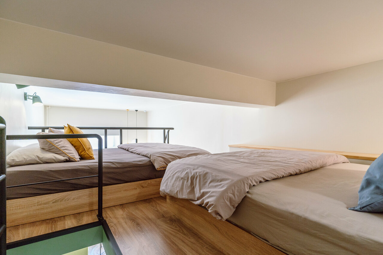Здесь прекрасно разместиться большая семья или компания друзей. Гости смогут отлично провести время, общаясь в гостиной, и, в то же время, не будут мешать друг другу во время отдыха. Выделенная гардеробная зона, просторная гостиная и две спальни.