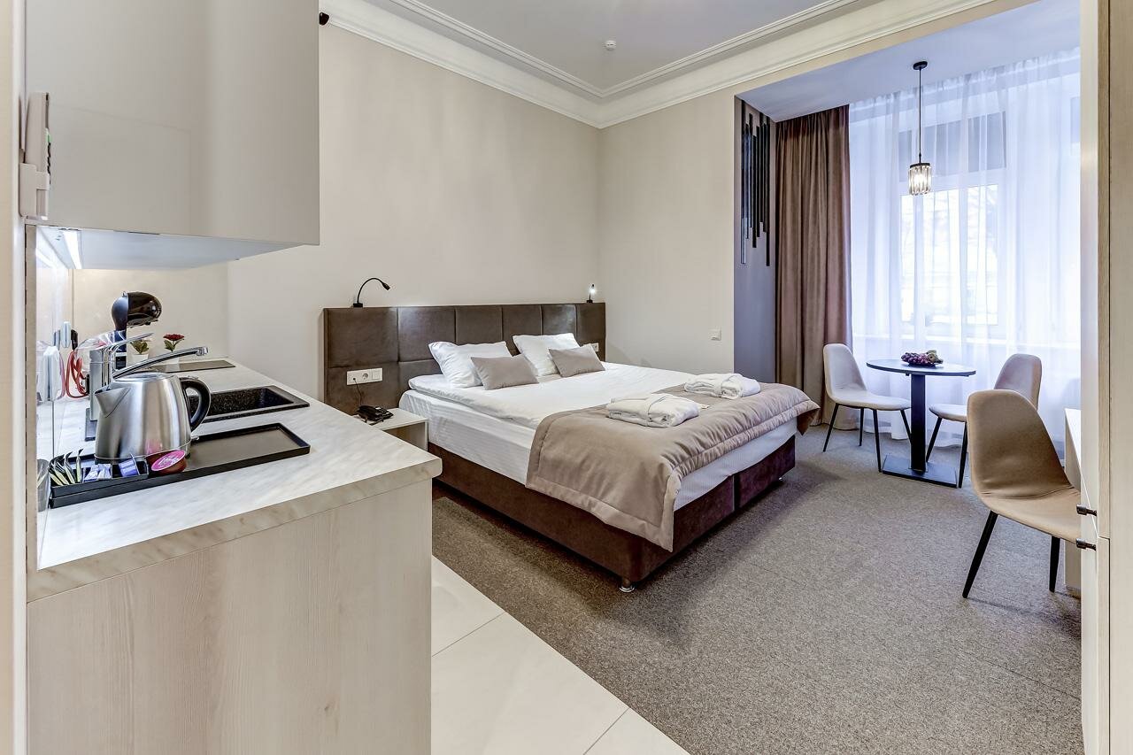 Очень удобное месторасположение, комфортные номера, приветливый персонал. Кухня оборудована всем необходимым. Окна выходят в тихий двор. В сентябре 2024 снова воспользовались услугами отеля. Как и в прошлые разу, впечатления исключительно положительные. Спасибо!