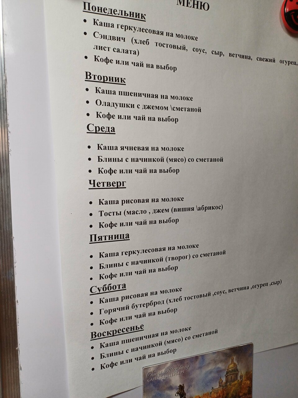 - Вкусные и разнообразные завтраки (особенно каши).