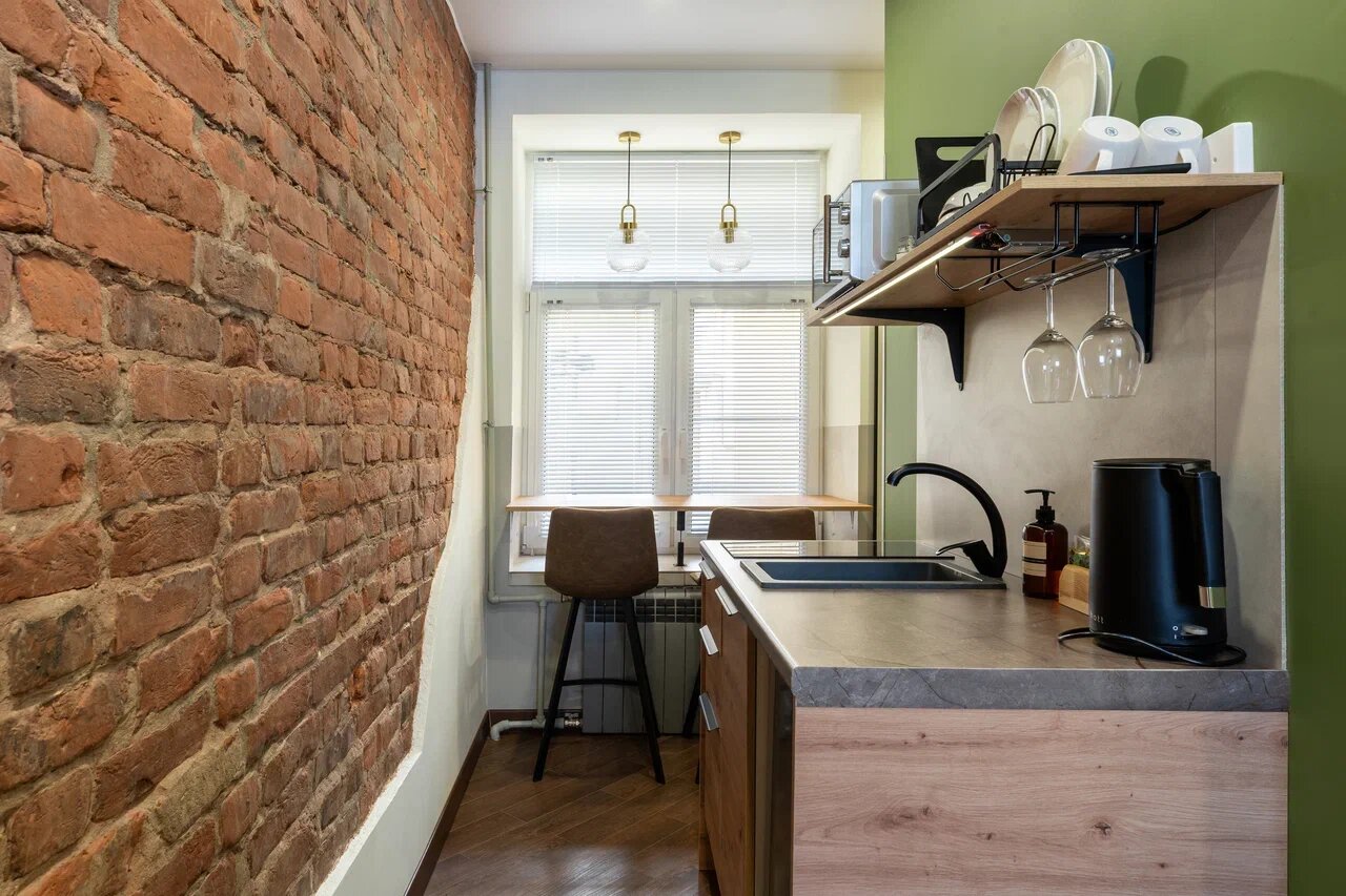 Отличные апартаменты для комфортного проживания!Останавливались здесь на 2 дня и остались очень довольны! Апартаменты чистые, уютные, полностью соответствуют описанию и фото. Плюсы: удобное расположение, всё необходимое есть: хорошая мебель, техника (телевизор, плита, стиральная машина, Wi-Fi), чистое постельное бельё и полотенца; приятный интерьер и продуманное пространство. И очень важно — контакт с хозяином, который всегда был на связи и быстро решал все наши вопросы вопросы.