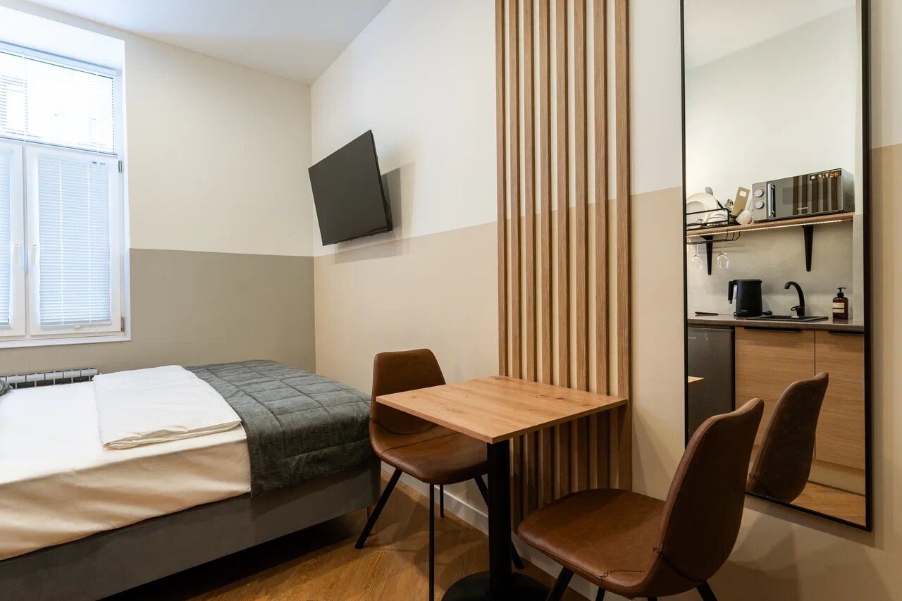 Удобное расположение в центре города. Уютная комната. Всё необходимое имеется. Аппартаменты супер. Спасибо!