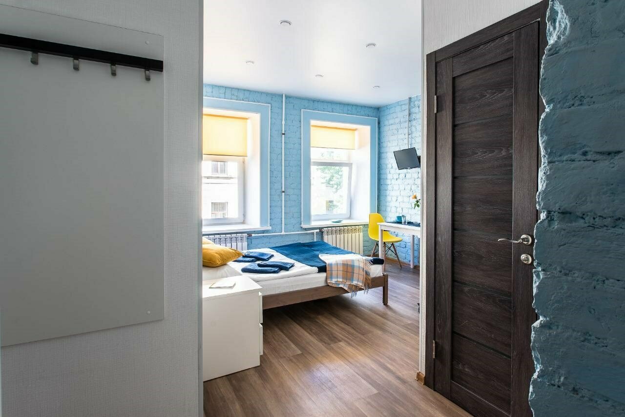 Из минусов: Номер не соответствовал фото, был меньше, очень маленький, и в обоях, а не голубом кирпиче, кирпич был только между окон. На фото везде выставлен лучший номер. Засор в душевой кабине и в раковине, за этим не следят. В душевой кабине нет полочки поставить шампуни, негде повесить полотенце сохнуть, нет запасного рулона туалетной бумаги и кухонной тряпки, питьевой воды в номере даже на первый день. Вода из водопровода пахнет рыбой, сколько раз останавливались в СПБ впервые с таким столкнулась. Из плюсов: номер чистый, достаточно новый, чистое бельё, стиральная машинка на этаже, есть порошёк. Расположение отеля хорошее. До метро 7 минут ходьбы. Итог: неплохой вариант для экономичного размещения, если объект выигрывает в цене по сравнению в другими вариантами.