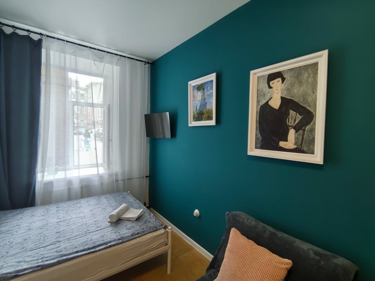Жили в 3-х местном номере. Отличная студия в центре города, в тихом дворе. Оборудована всем необходимым (вплоть до зонта, сушилки для обуви и ролика для чистки одежды). Удобный матрас — удавалось прекрасно высыпаться после длительных прогулок.