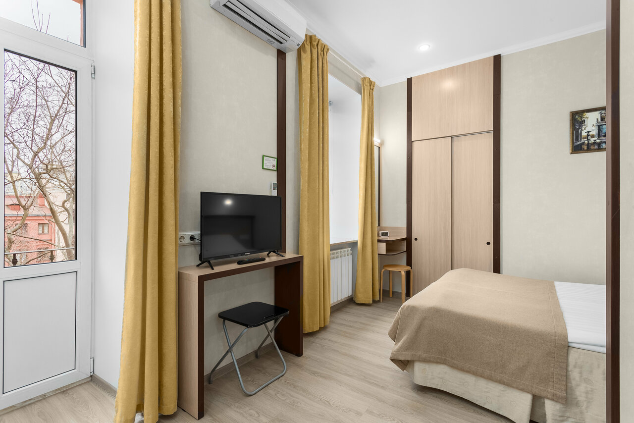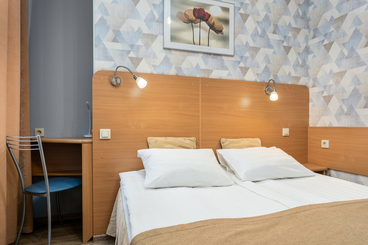 Хорошее расположение: и метро, и невский рядом, и в то же время тихий дворик. Интерьер в номере скромный, но все необходимое есть. У нас в номере был балкон, приятно было посидеть, попить кофе. 1 кровать в номере была расшатана. Надеюсь, ее заменили или отремонтировали. Было очень приятно, отель поздравил с днем рождения.