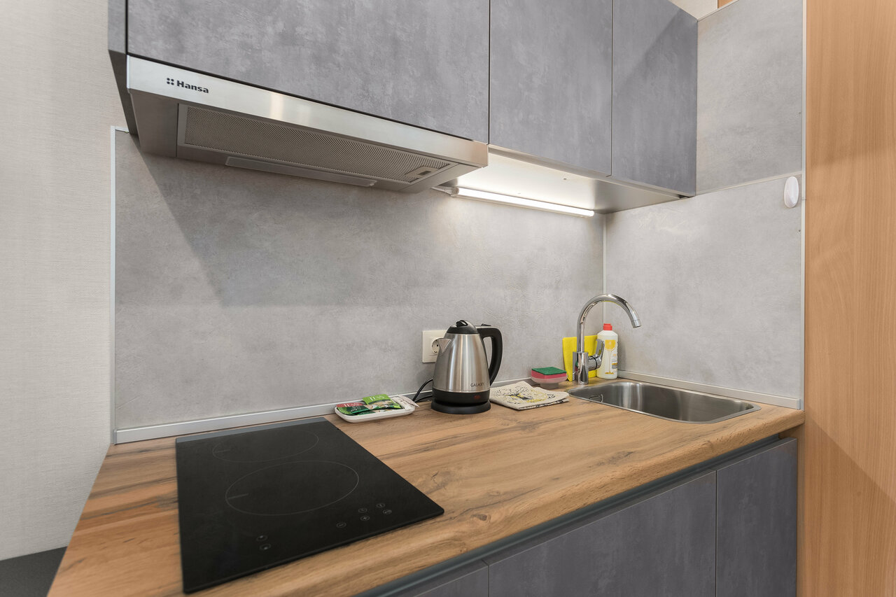 - Наличие кухни и бытовой техники в апартаментах.