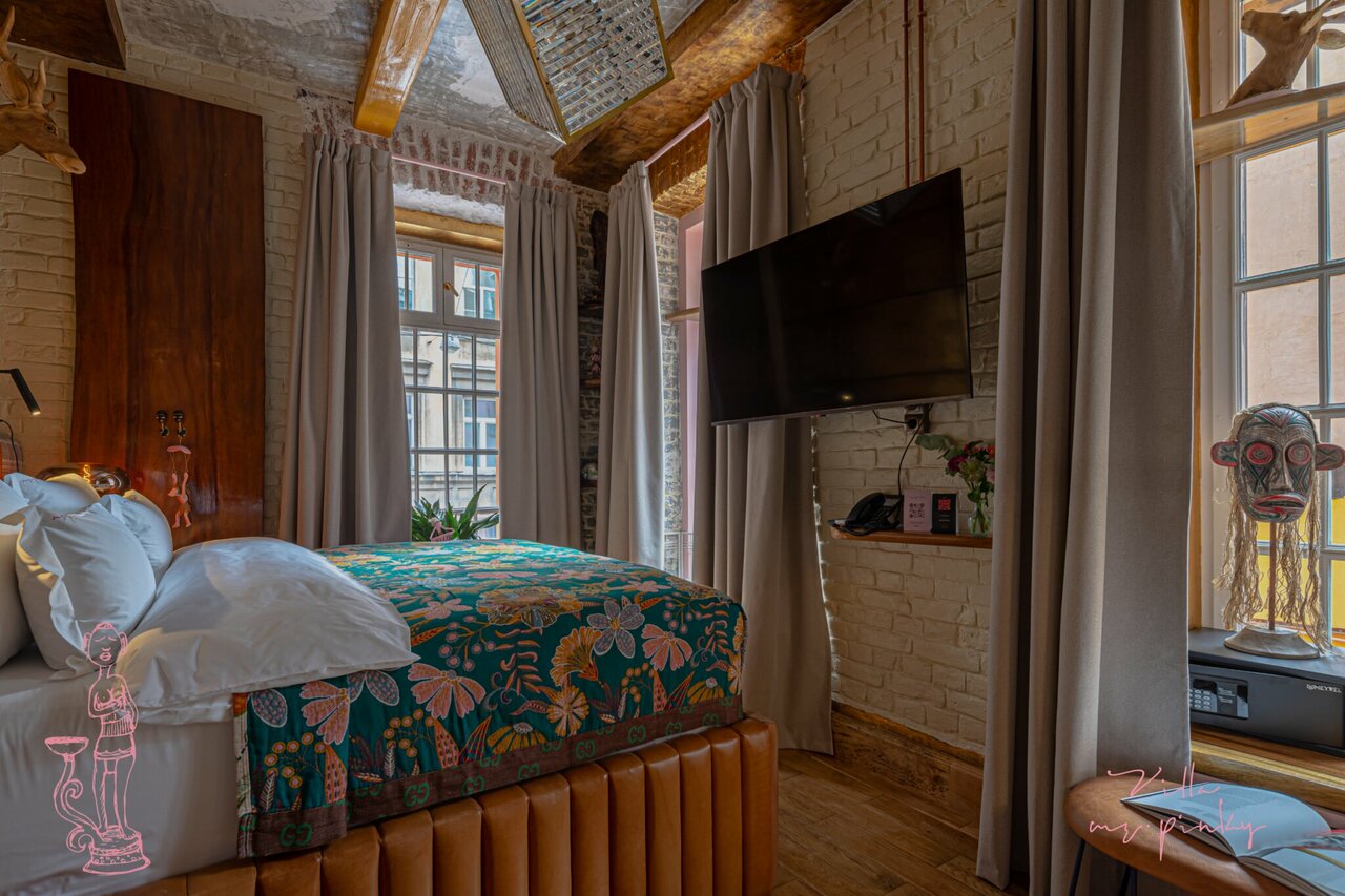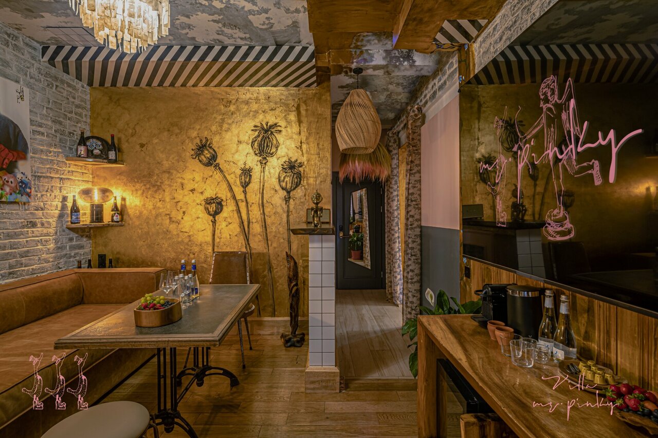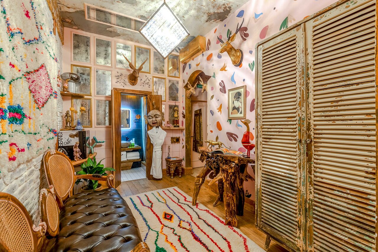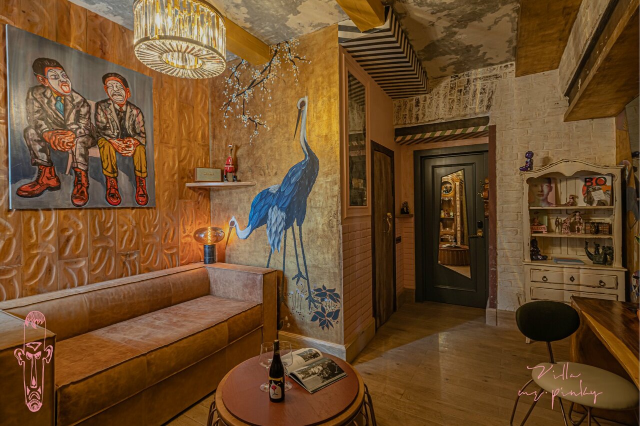 Вы находитесь в голове азиатского ганкстера во время его наркотического трипа. Много образов смерти, причудливых вещиц, собранных в путешествиях, розового и других цветов. Каждая комната как открытие, как лист из книги жизни. Вы никогда не знаете, как глубока кроличья нора. Когда вы всматриваетесь в нее, она начинает всматриваться в вас, вы проваливаетесь как Алиса и бесконечно падаете и странные предметы в причудливых сочетаниях кружатся вокруг. Позвольте себе упасть. Не так много отелей настолько уникальных и ярких. Второй жизни не будет, а если будет, может уже не быть отеля. Завтраки прекрасны, разнообразия хватает на несколько дней. Кроме завтраков ресторана не было, он просто не работал. Но работал бар. Вход через барбершоп. Еще есть массаж.