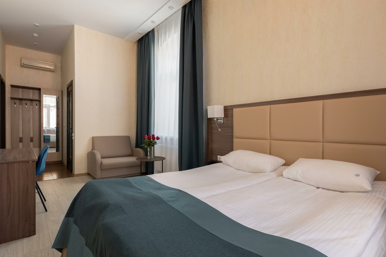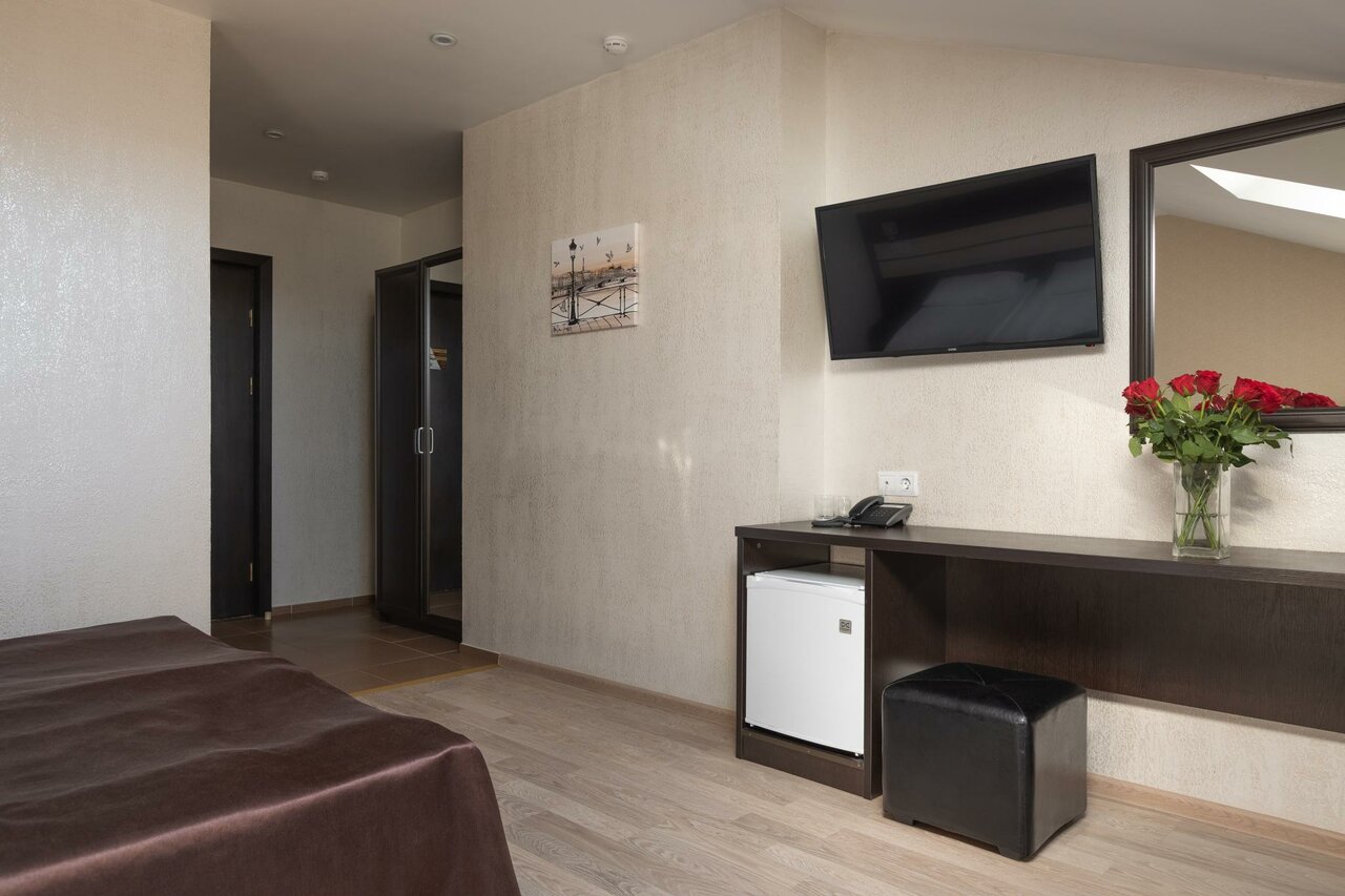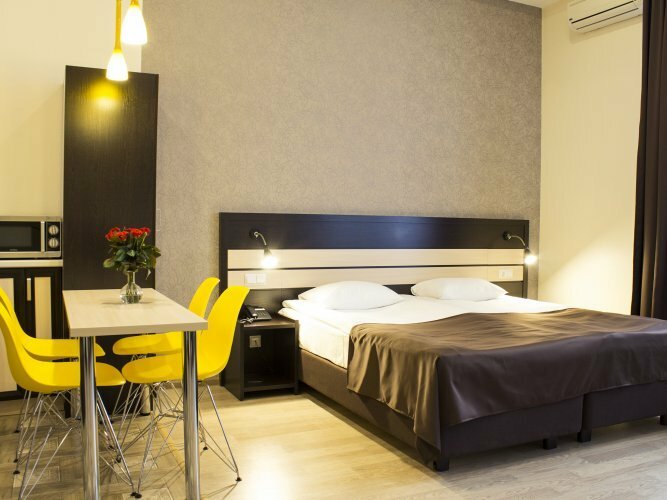 Отличный отель. У нас прекрасный двухкомнатный номер. Холодильник. Кондиционер. Два телевизора. Чистейшая постель. Ванная. Горячая вода постоянно. Уборка ежедневная и очень качественная. Очень приветливый, внимательный к проживающим, персонал. Завтраки просто пальчики оближешь. Особое спасибо девушкам на ресепшене. Всем рекомендую этот отель.