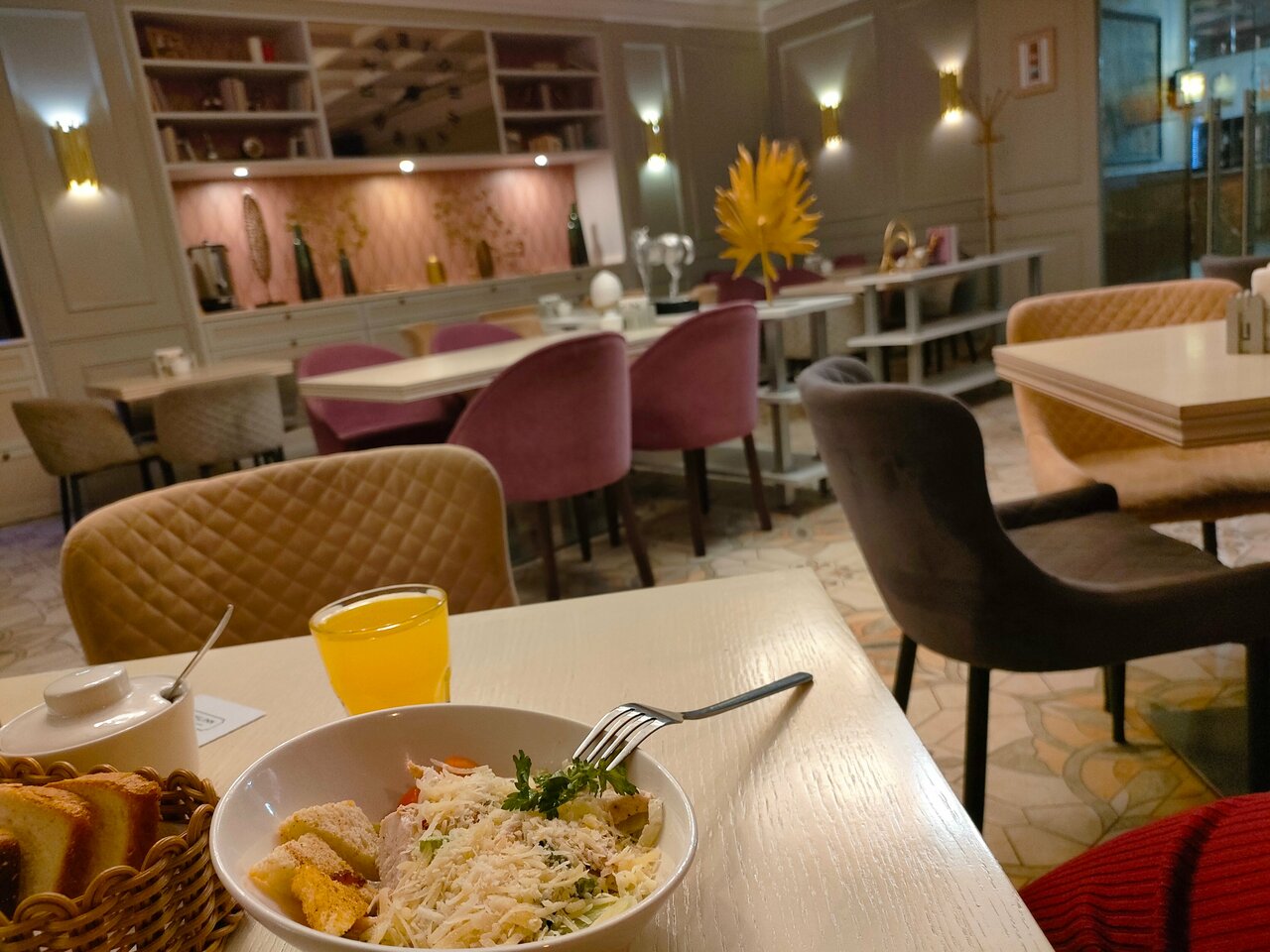 Номер на третьем этаже понравился — чистый, просторный, всё есть необходимое. Каждый день убираются. Завтраки прекрасные! Омлет просто супер!) Однозначно рекомендую этот отель!