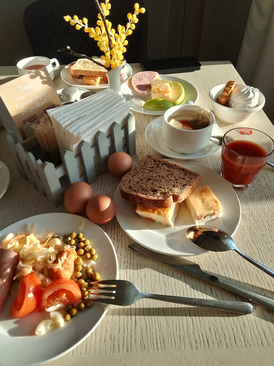- Вкусные завтраки (омлет, блины, фрукты и др.).