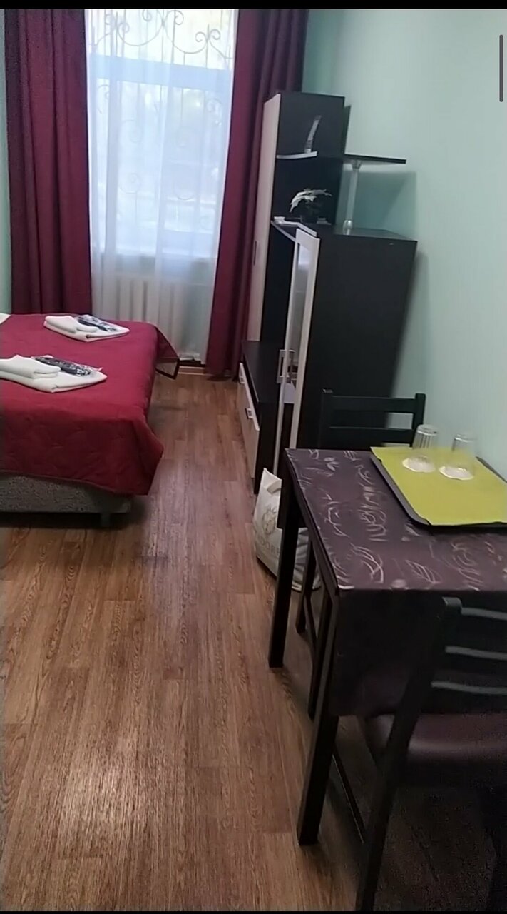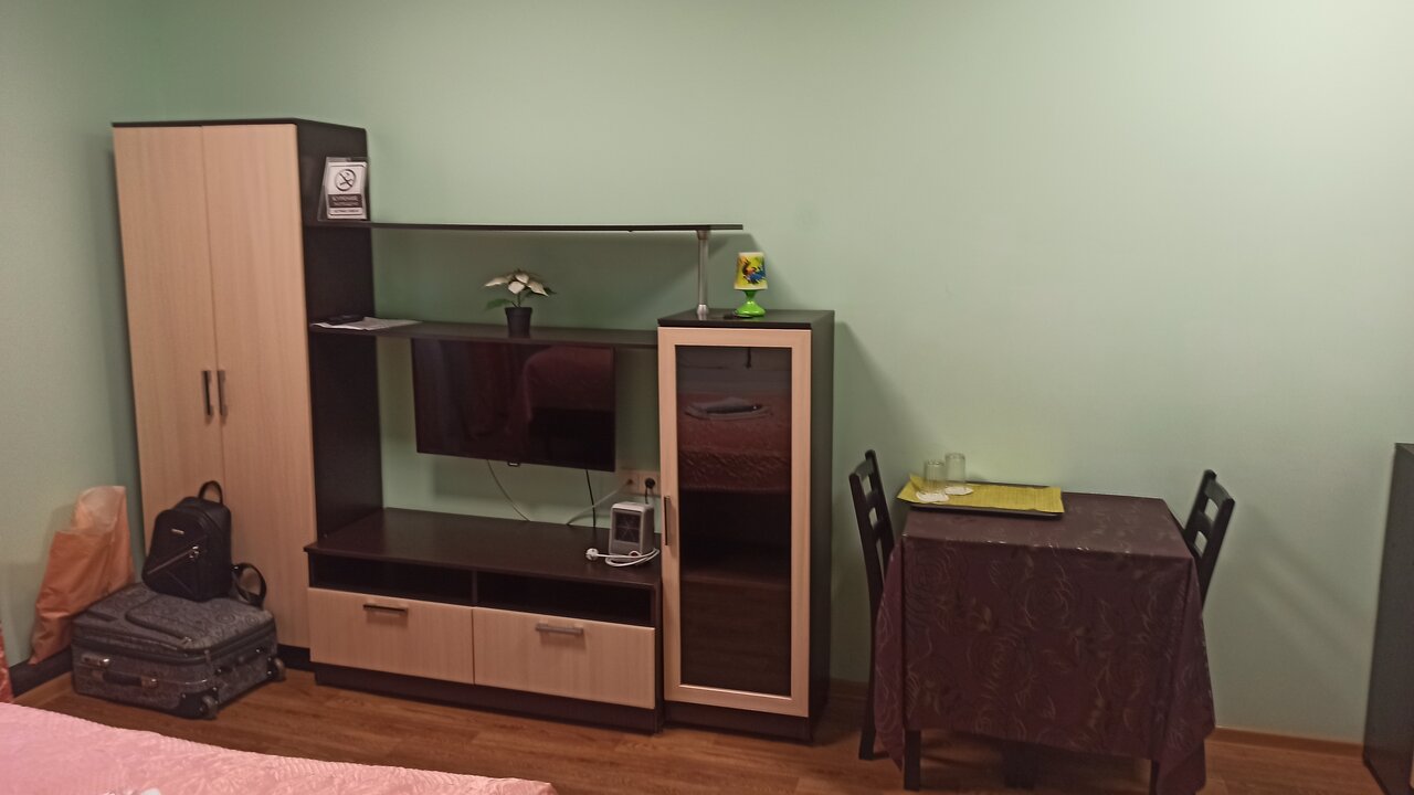 Снял как самый первый попавшийся вариант на ночь. Для общаги дорого. ‘Номер’ небольшой, кровать со старым плохо отстиранным и местами рваным бельем, стол, вешалка для одежды, тумбочка, телевизор. С окна тянуло холодом (для объективности на улице было -30), был непонятный запах в комнате, как-будто кто-то бросил пару дней назад недоеденное яблоко. Удобства на этаже. Дешёвый смеситель в душе, трудно настроить комфортную температуру — либо холодно, либо кипяток. Далеко до центра. Заселили удаленно — в час ночи по приезду скинули по Ватсапп код от домофона и номер комнаты.
