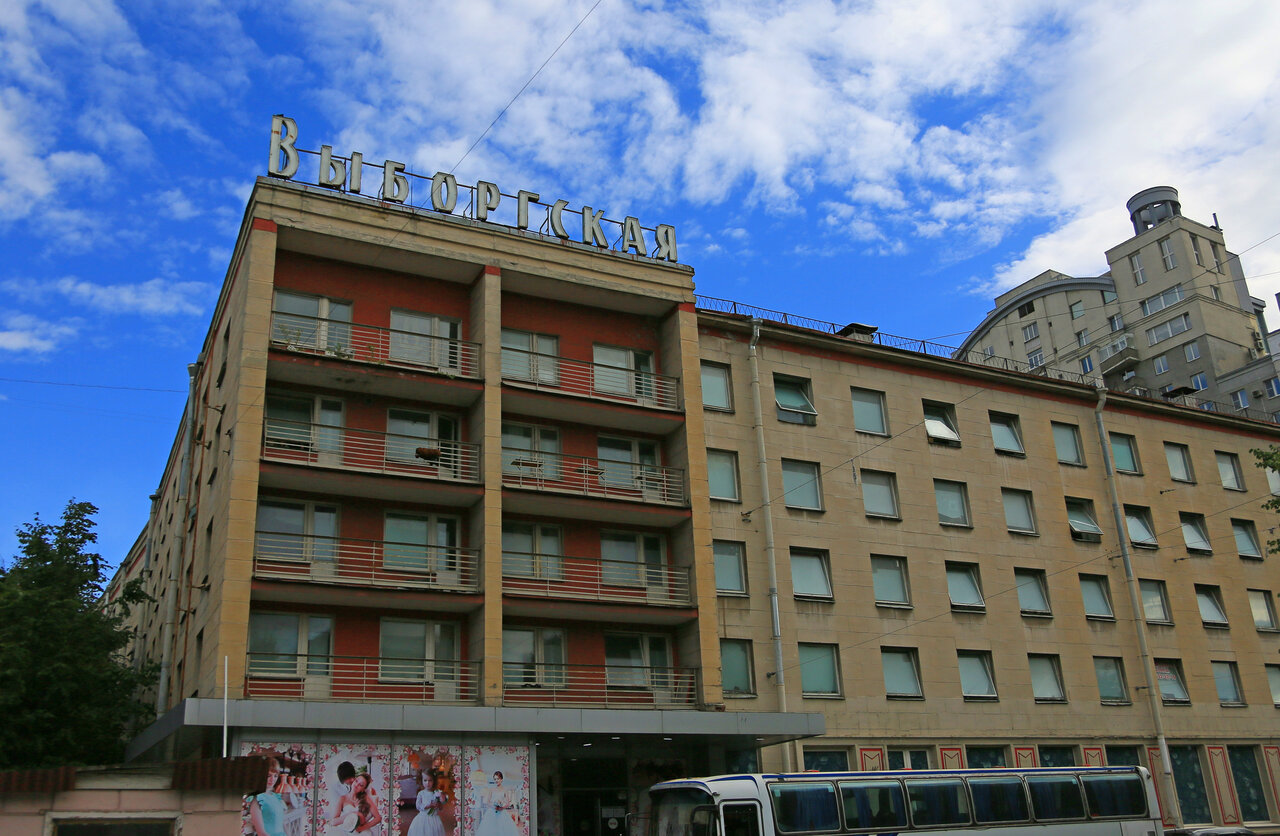 Бывшая гостица выборская. Раньше с лихие 90,2000 годах приезжали много иннонстранцев. Считалась гостиница самая крутая, а тепепь здание уже заброшеная 10 детками лет. Вроде как знаю собираються сносить. Очень жаль! Сейчас место для у тех кому жить не где .