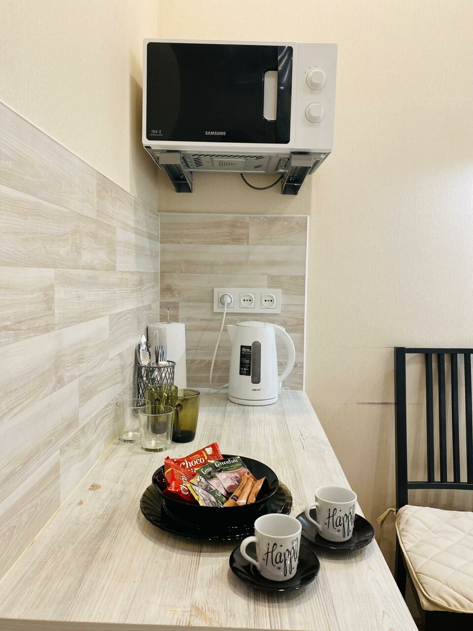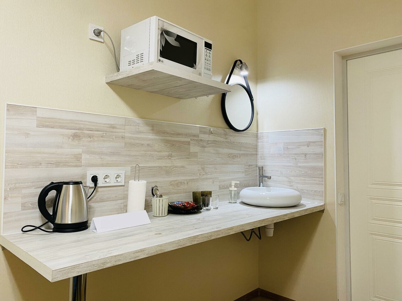 - Наличие кухонной зоны (чайник, микроволновка, стиральная машина).