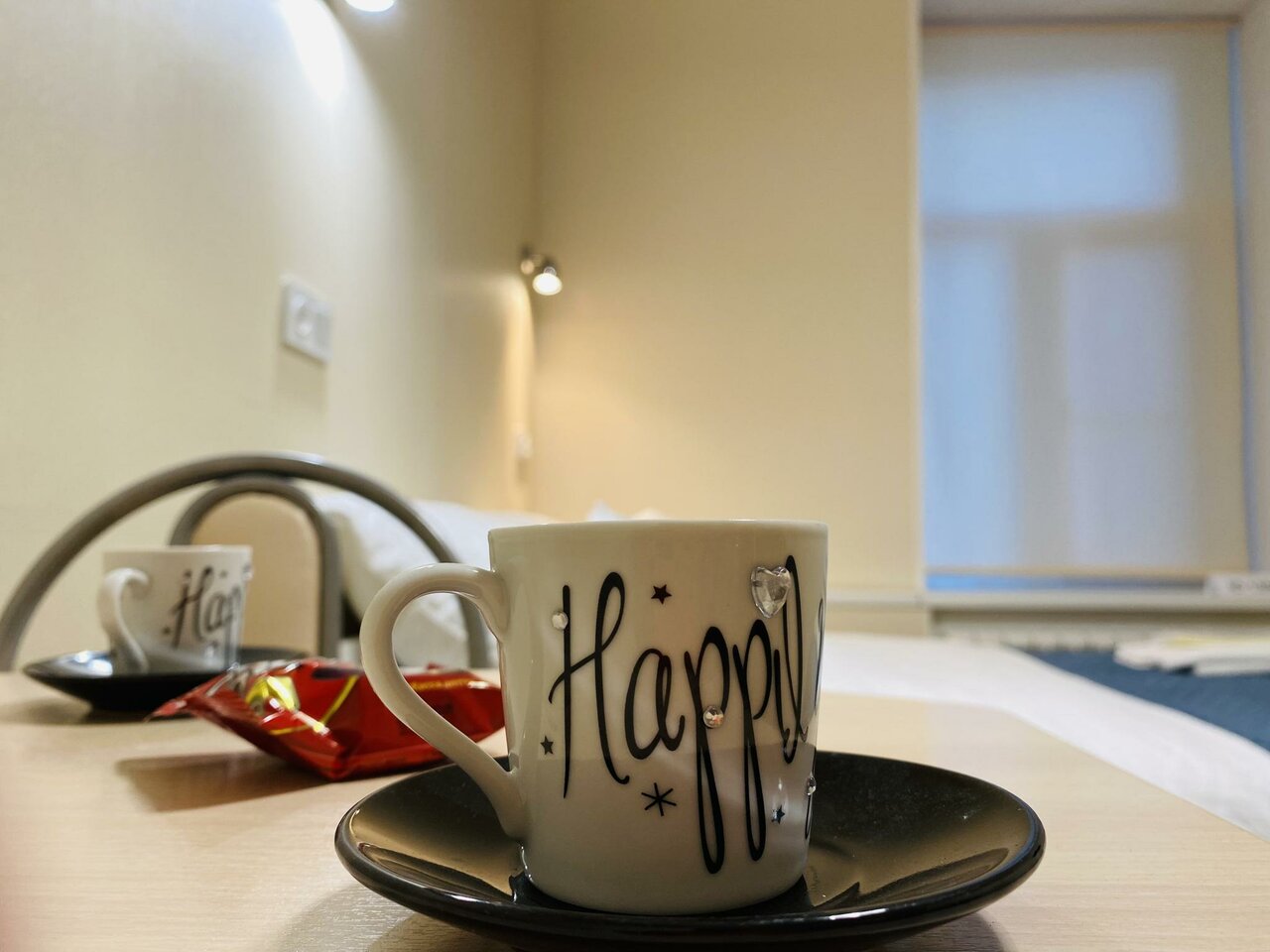 Очень приятное место. Свежий ремонт. В номере есть чайник и микроволновка. Можно выйти из номера и посетить общую кухню. Приятно провела время 🙂
