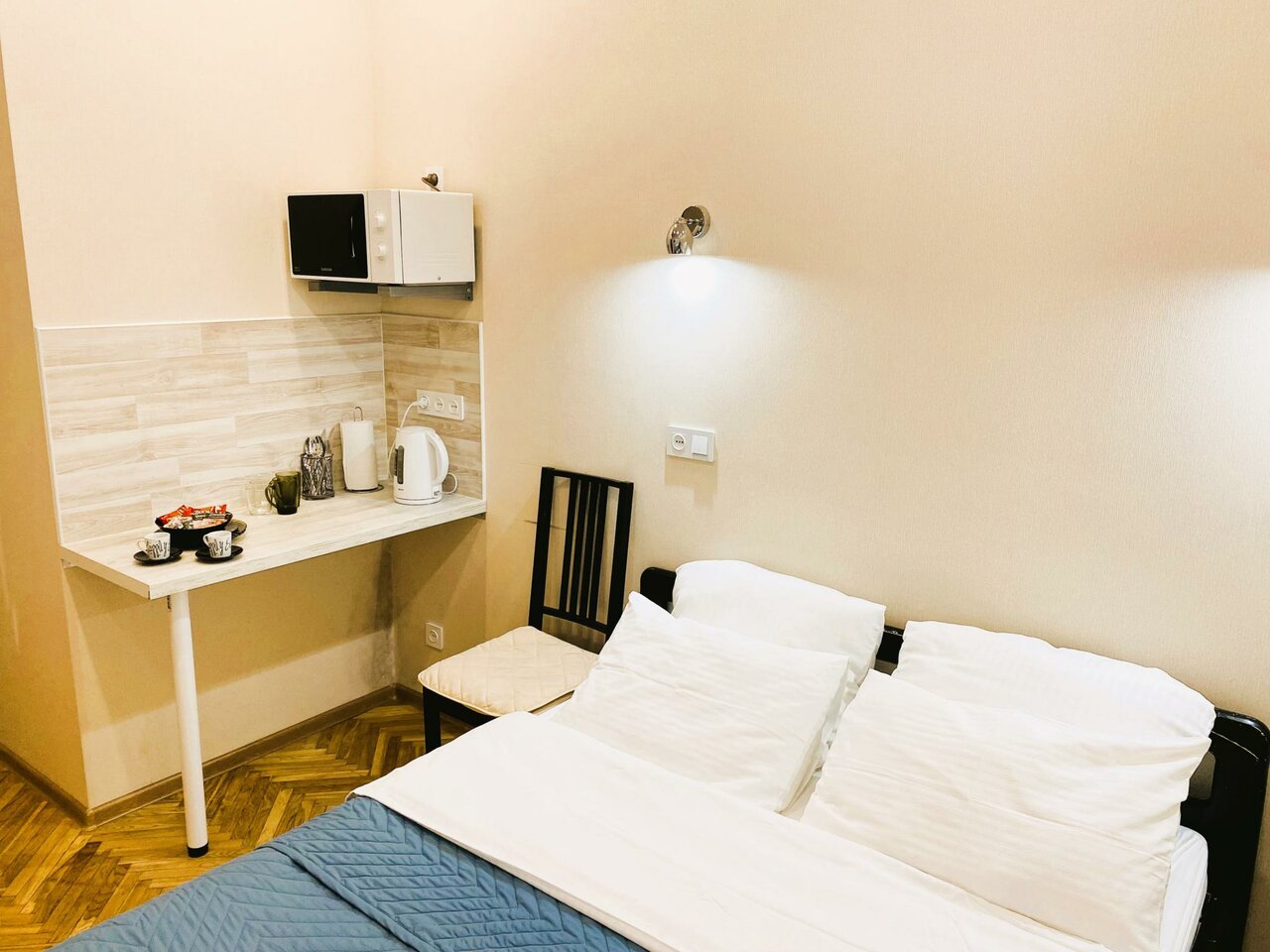 Уютные апартаменты площадью 20м2Мах вместимость - 3 человека 1 двух спальная кровать + 1 односпальное местоПолностью оборудованная кухня, гардероб, телевизор, Wi-Fi, ванная комната, фен, кондиционер, стиральная машина