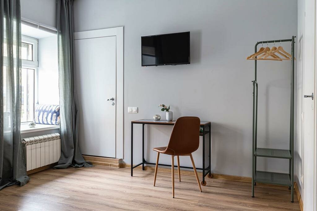 Уютный номер, с коммуникациями все хорошо, кровати удобные, но маленькая прихожая. Если хотите остановиться здесь с целью переночевать, то будет супер удобно и комфортно. Расположение очень удачное, самый центр города.
