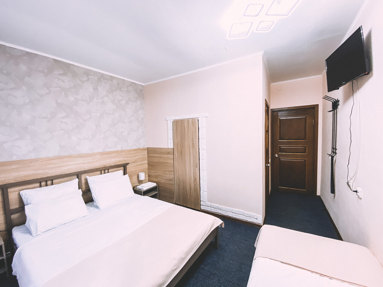 Остановились на три ночи вдвоем в номере 2 за 2700р/ночь, для ночлега самое то! удобное расположение, рядом супермаркет 24, в отеле есть общая кухня, в каждом номере свой санузел, фотографии здесь и на букинге соответствуют действительности) твердая четвёрка!