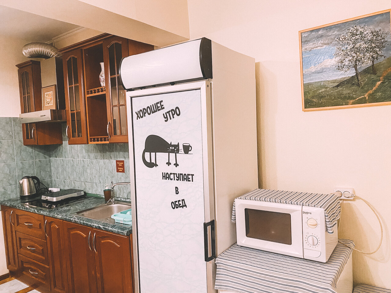 - Комфортно и уютно.; Нешумная улица.; Наличие общей кухни.; Гуманная цена.; В номерах есть все необходимое.