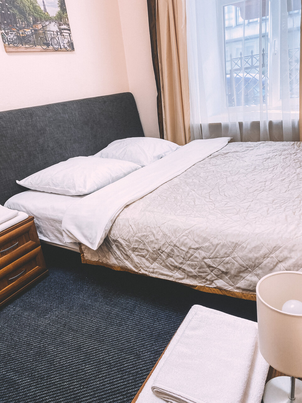 Хочется отметить, что необходимо обновить каталог фотографий. Встретила женщина- администратор,позитива на лице не было.затем она проводила в номер..я осталась в нем и решила посмотреть получше. Фото не прилагаю,но это реально- покрывало в пятнах неизвестного происхождения, постельное белье не пахнет свежестью, и все в желтых пятнах.на что пригласила администратора и спросила про эти ньюансы…и был ответ…не нравится…заберите деньги и идите отсюда. Я в шоке,!!!! Уважаемые, такое в Санкт-Петербурге вижу впервые, очень часто здесь бываю,все нравится, и что-то как то не впечатлило….именно это заведение…