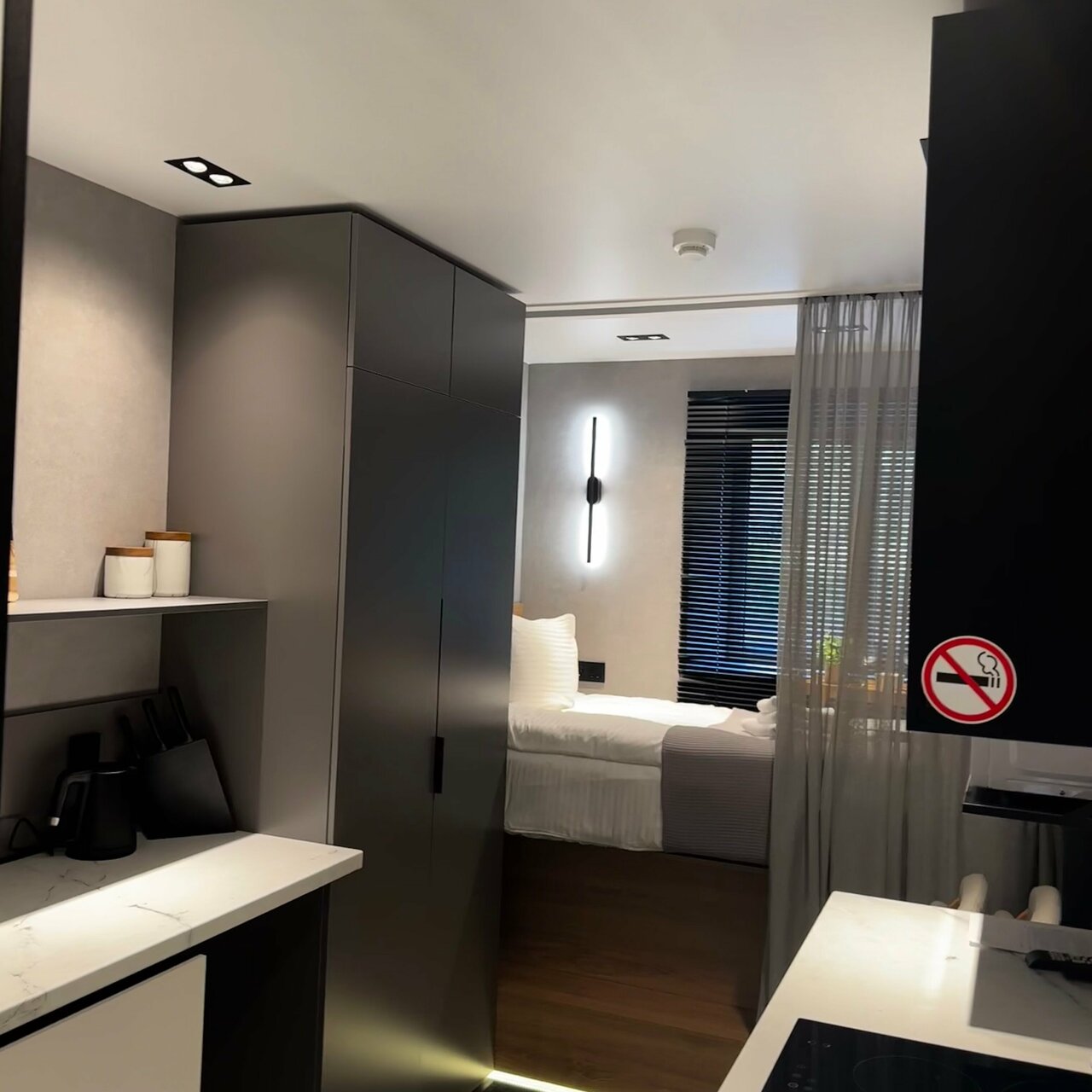 Отличные апартаменты, остановились там с девушкой на 4 ночи. Дизайн и месторасположение сразу запали в душу, именно поэтому наш выбор пал на этот отель. В номере есть все что нужно для комфортного проживания. Огромное спасибо Ясмине, владелице этого крутого места! Всем рекомендуем! бы