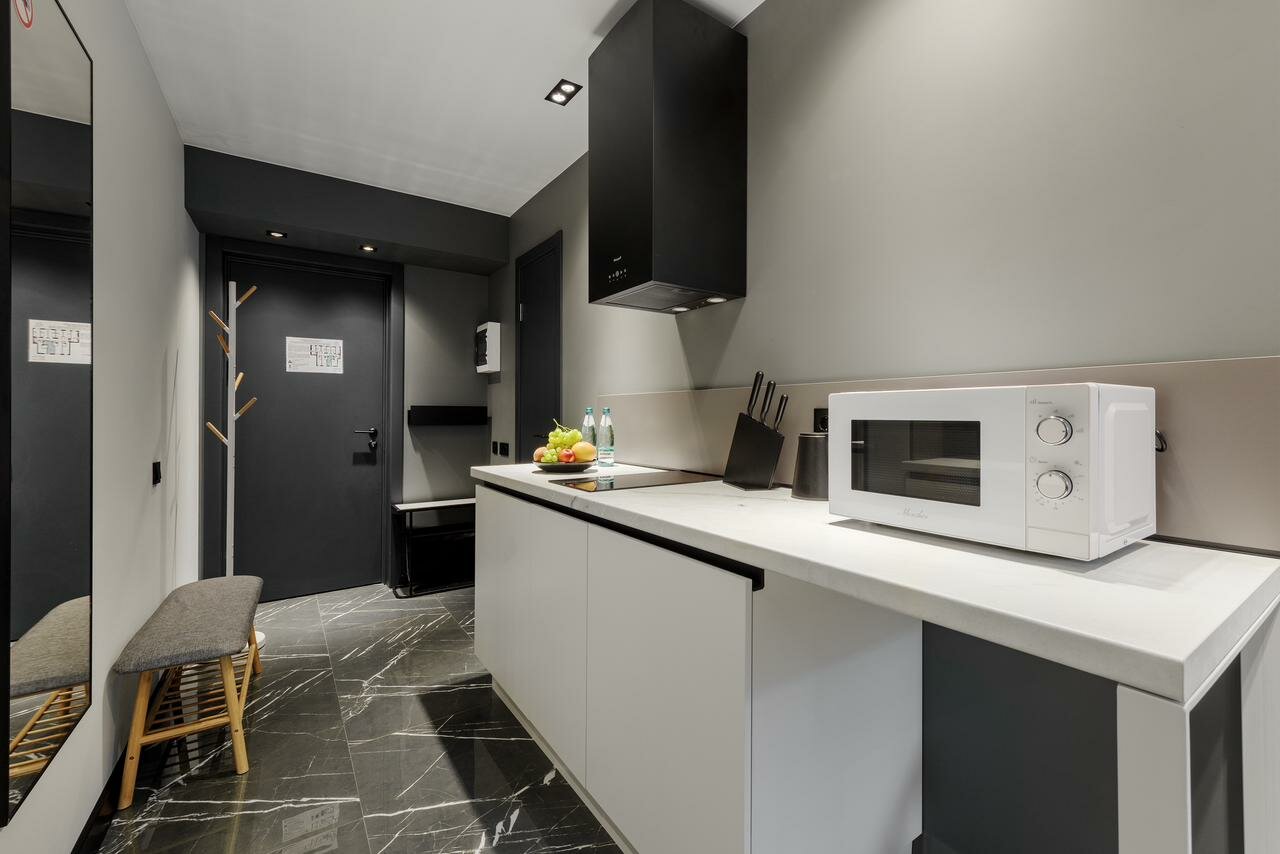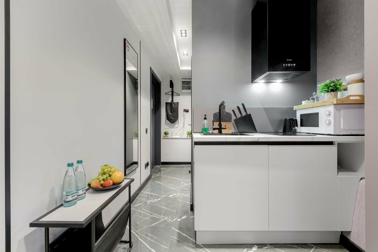 Очень эффектный апарт-отель. В самом центре Питера. Есть все для жизни. Даже стиральная и сушильная машина. Впервые вижу подобное.