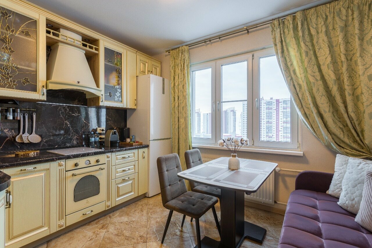 Спасибо большое Анне за квартиру! Квартира чистая, просторная! Есть шикарная кровать и два дивана ! Мебель вся новая. Посуда очень дорогая. Кофе, чай и т. д Фен, утюг, штопор все есть. 16 этаж вид с окна очень красивый!
