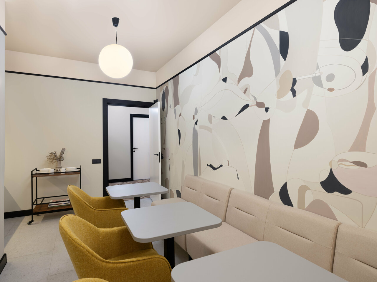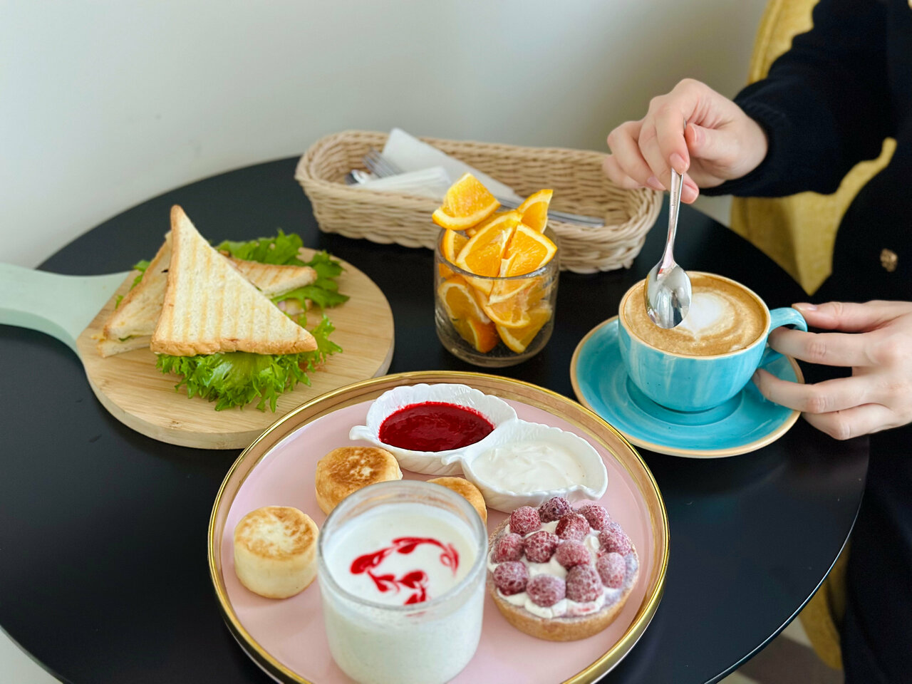 Удобное расположение, потрясающие панорамные окна! Очень светло и уютно. Вежливый персонал, отличное обслуживание