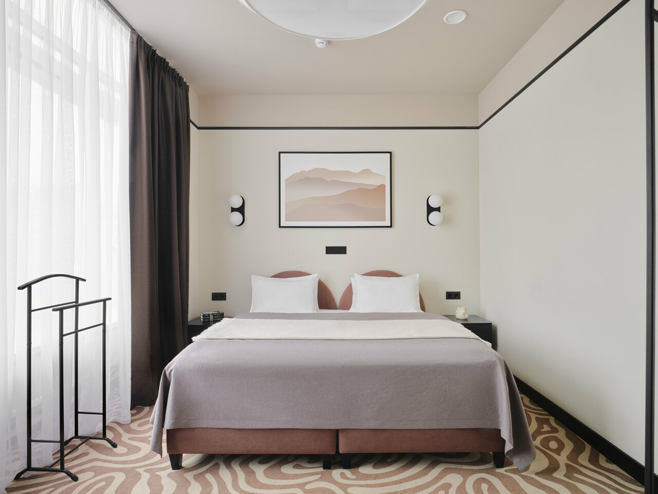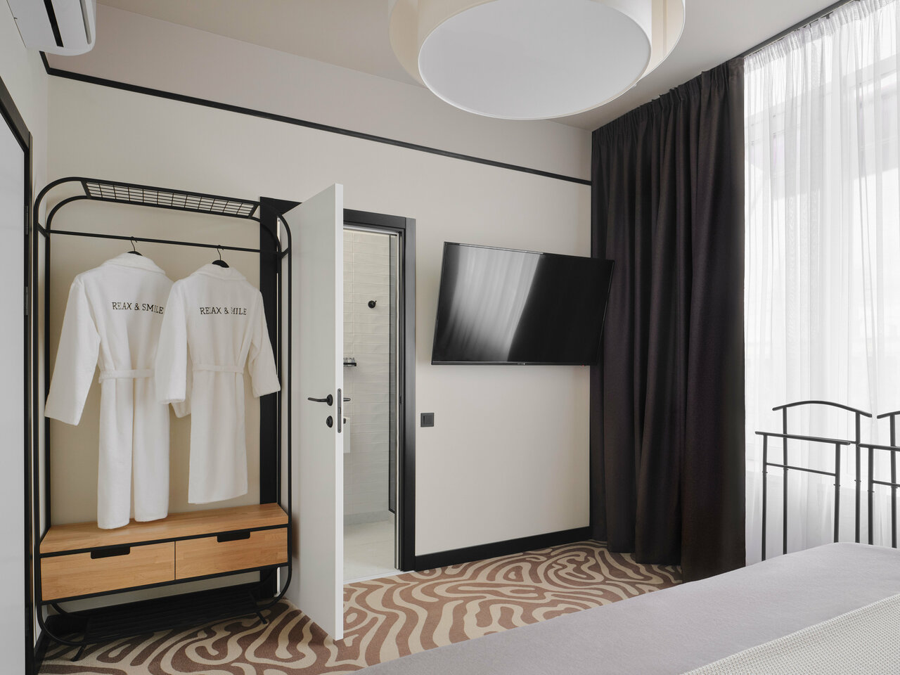 Приятный отель. Жили 3 ночи в трехместном,в принципе все понравилось. Администраторы приятные. Номера современные, в номере есть все что нужно для комфортного отдыха: мягкая кровать, диван, кресла, столик с чаем и чайником, огромный телевизор. В ванной комнате все наборы для гигиены и даже беруши, которые не часто встретишь. Завтраки вкусные из соседнего кафе. Подпортило мнение лишь не до конца прогретый жульен и замерший чизкейк в последнее утро. Лайк этому месту