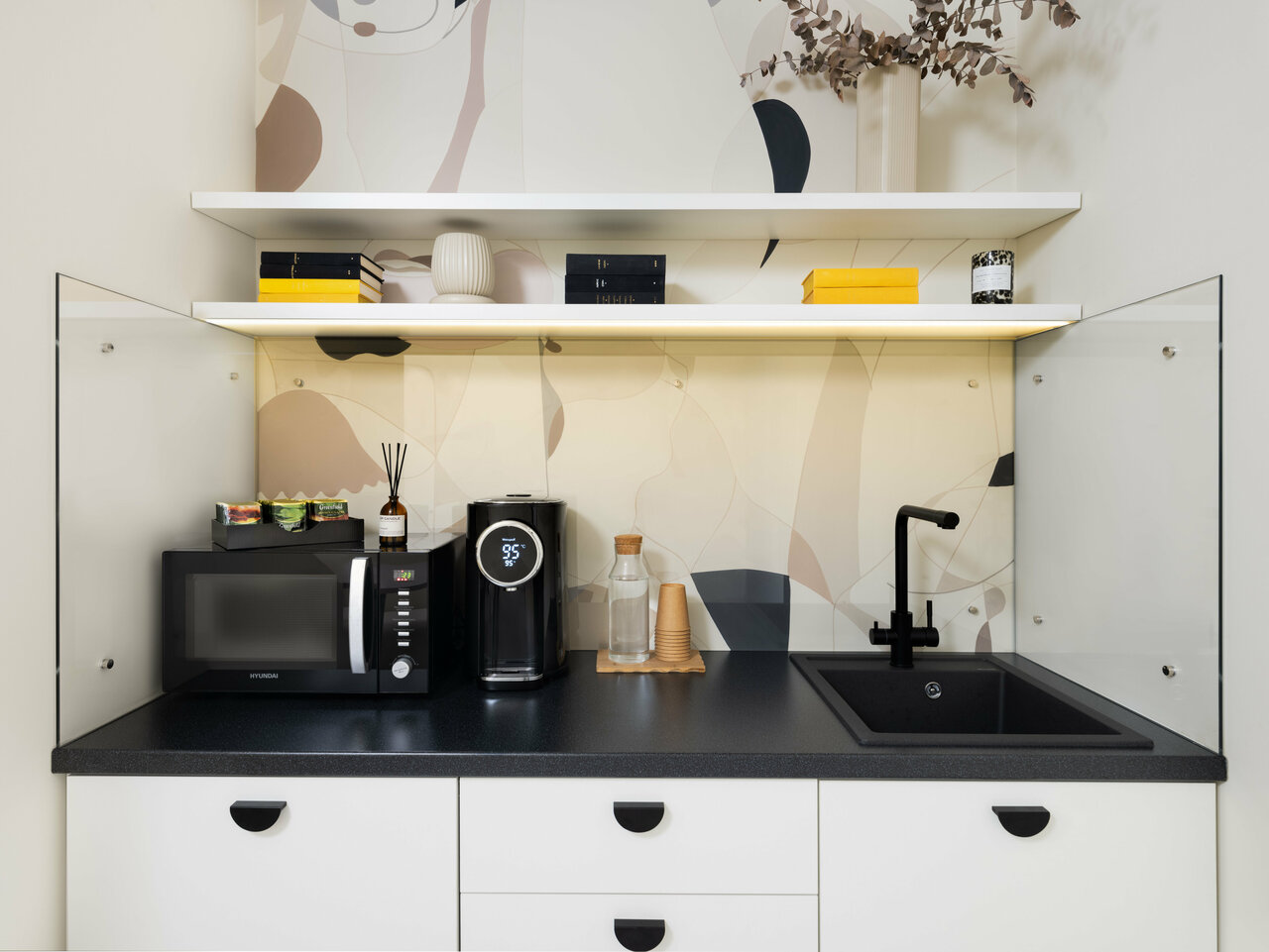 - Гармоничный и стильный дизайн интерьера.; Уютные и чистые номера.; Наличие всех необходимых удобств (чайник, телевизор, кондиционер, мини-холодильник).; Бесплатная парковка.; Удобное расположение (рядом метро, центр города).