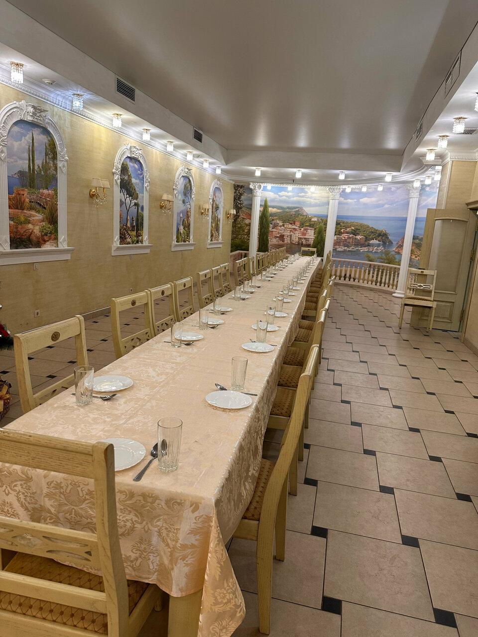 Тих. Уютно. Не дорого. Располагающая атмосфера для проведения банкетов. Вкусная кухня. Не дорого.