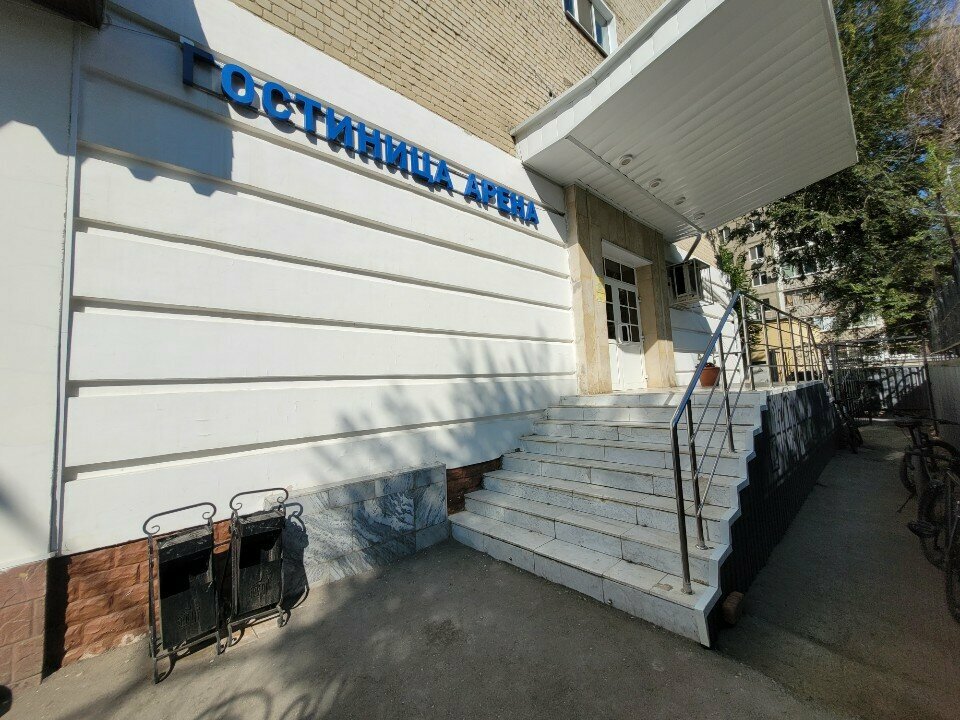 Гостиница «Арена» (Саратов) расположена по адресу: площадь им. С.М. Кирова, 4, вблизи центра и парка. Работает круглосуточно, предлагая недорогие номера с Wi-Fi, телевизором, холодильником и кухонными удобствами. Доступны услуги консьержа, ускоренная регистрация и проживание с животными. Время заезда — с 14:00, выезда — до 12:00.