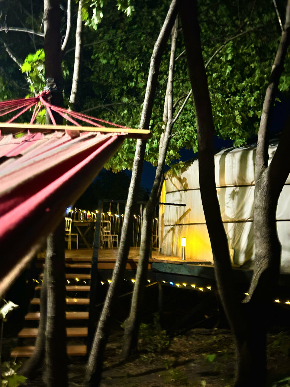 Отличное место Отдыхали с подругами и маленьким ребенком в юрте Ночью было на улице холодно из-за дождя и ветра, но в самой юрте хорошо, тк установлены теплые полы (плюсик, ребенок мог ползать по полу и не замерзнуть) Все очень красиво, чисто и уютно Удивились тому, что есть вся необходимая посуда и холодильничек На лето нам сказали, что повесят гамак Уже с девочками планируем дату, чтоб вернуться) Отдельное спасибо администратору: очень вежливая, всегда была на связи, все максимально подробно рассказывала