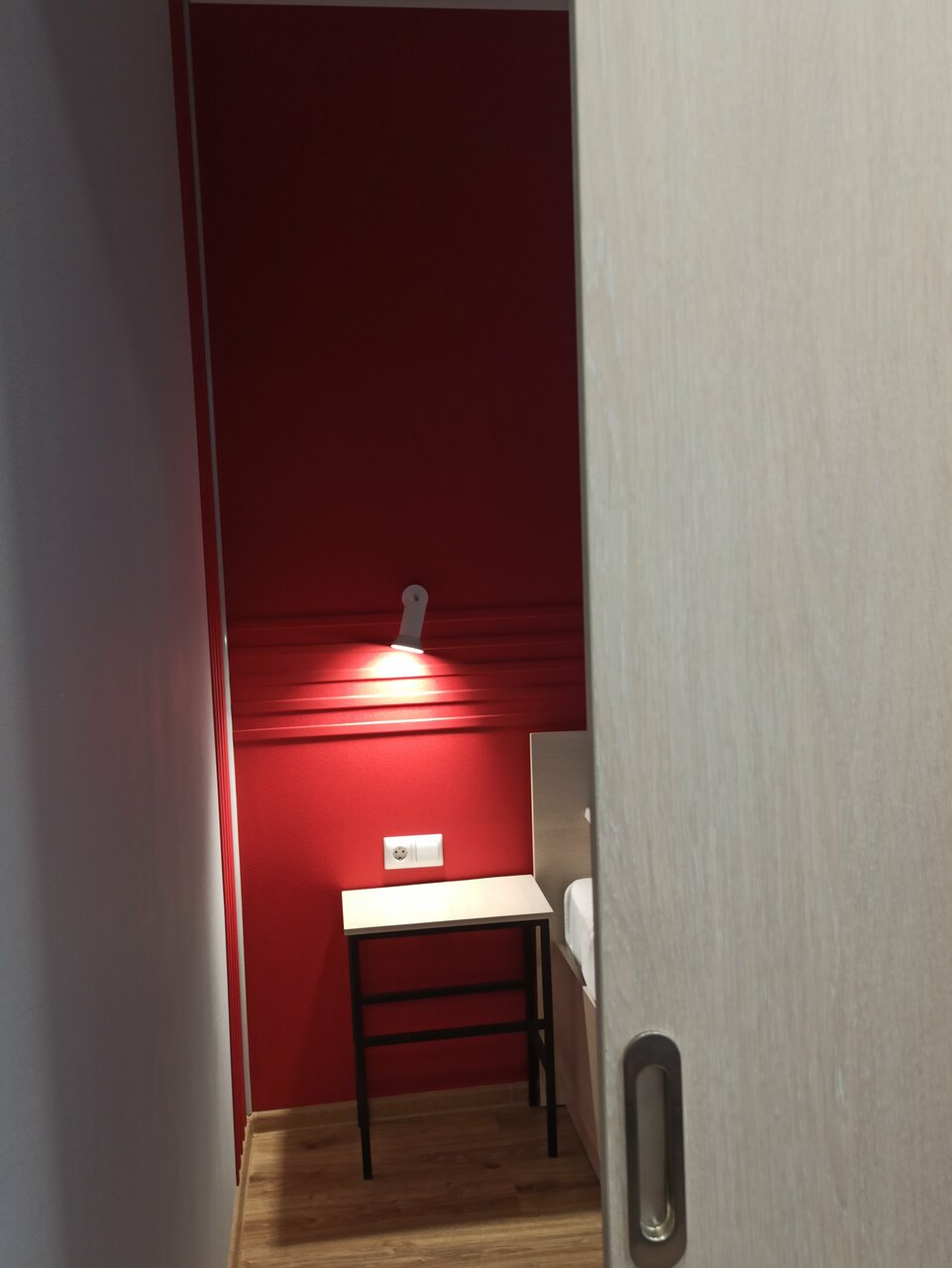 Хорошая локация, неочевидный вход с улицы, ламопчки цвета ‘холодный’ белый — неуютно. Терпимо, если на пару ночей.